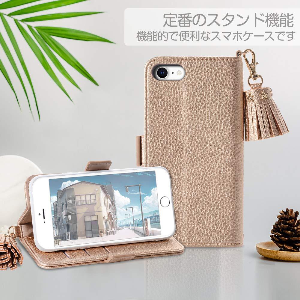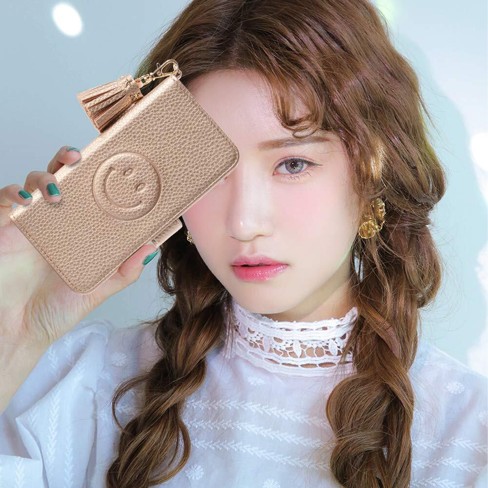 iPhone SE3 ケース手帳型 かわいい シンプル ケース 手帳型 おしゃれ iPhone 8 携帯カバー 高級レザー iPhone 6s 手帳ケース タッセル アイフォンse3 ケース手帳型 アイフォン8 ケース手帳がた smile 女性 SE2 携帯カバー 全面保護 防汚シェル 笑顔 iPhone 7 財布型 横置きスタンド機能付き 電話ケース (サンゴールデン)