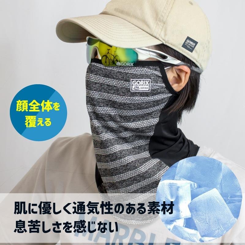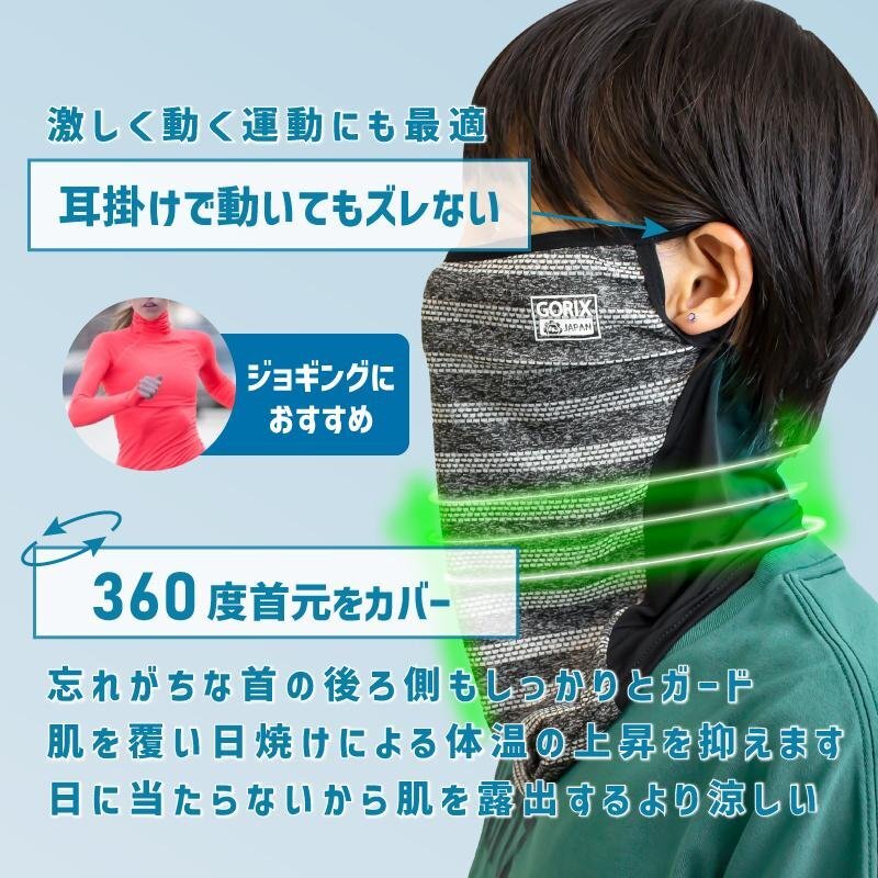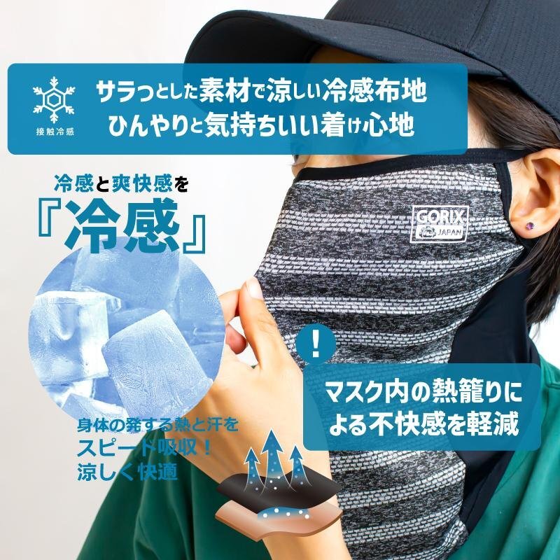 接触冷感で涼しく、夏のスポーツ時や屋外作業の時に最適なマスクです。