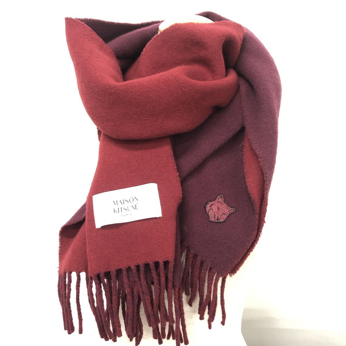 【MAISON KITSUNE】メゾンキツネ★マフラー ウール バーガンディ えんじ色 MM06201WA0018 ボールドフォックスヘッド ウールスカーフ