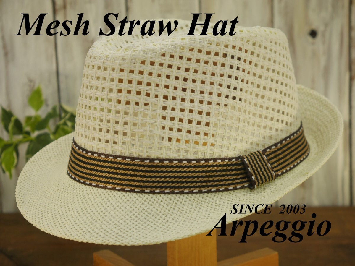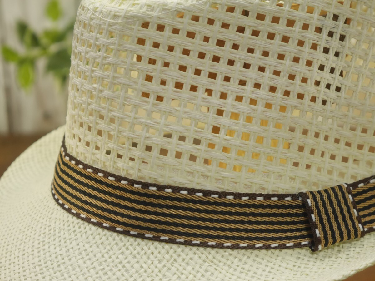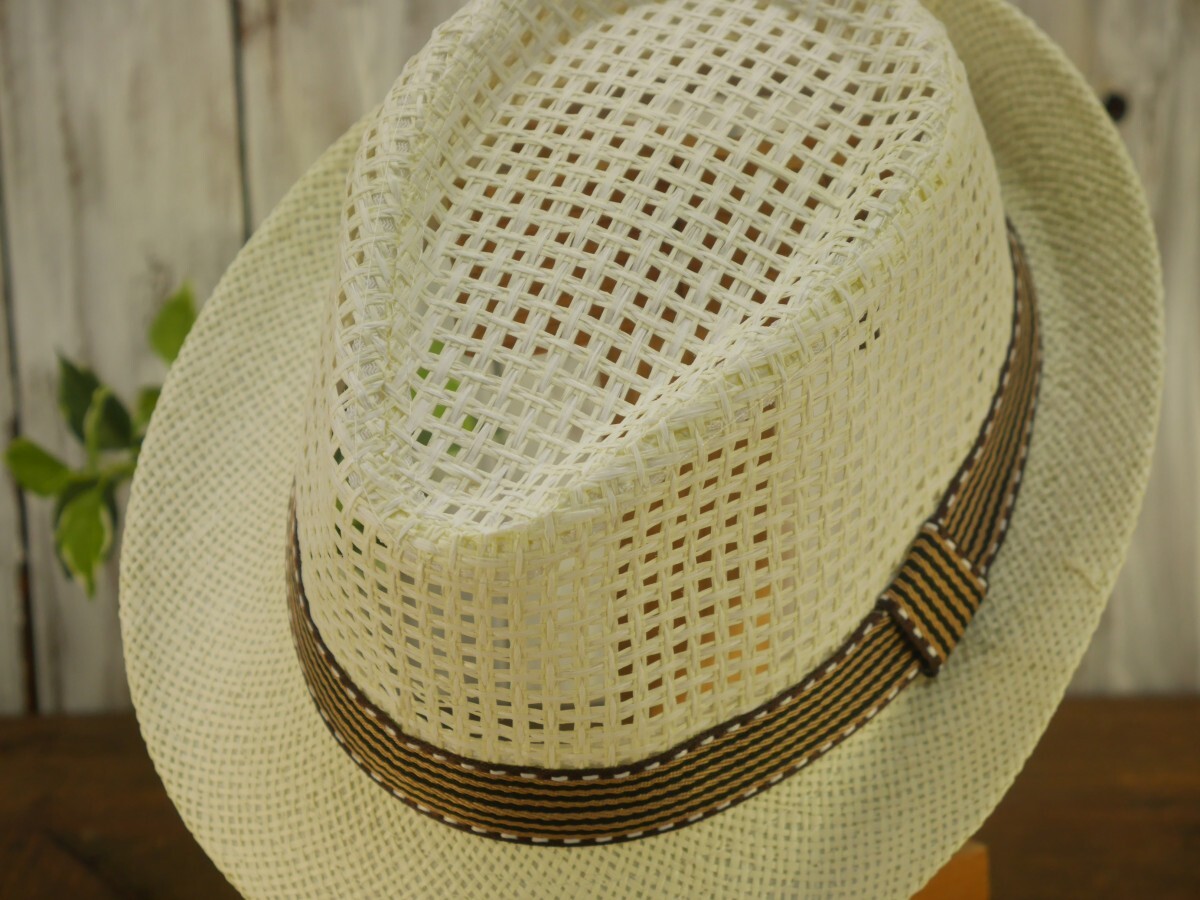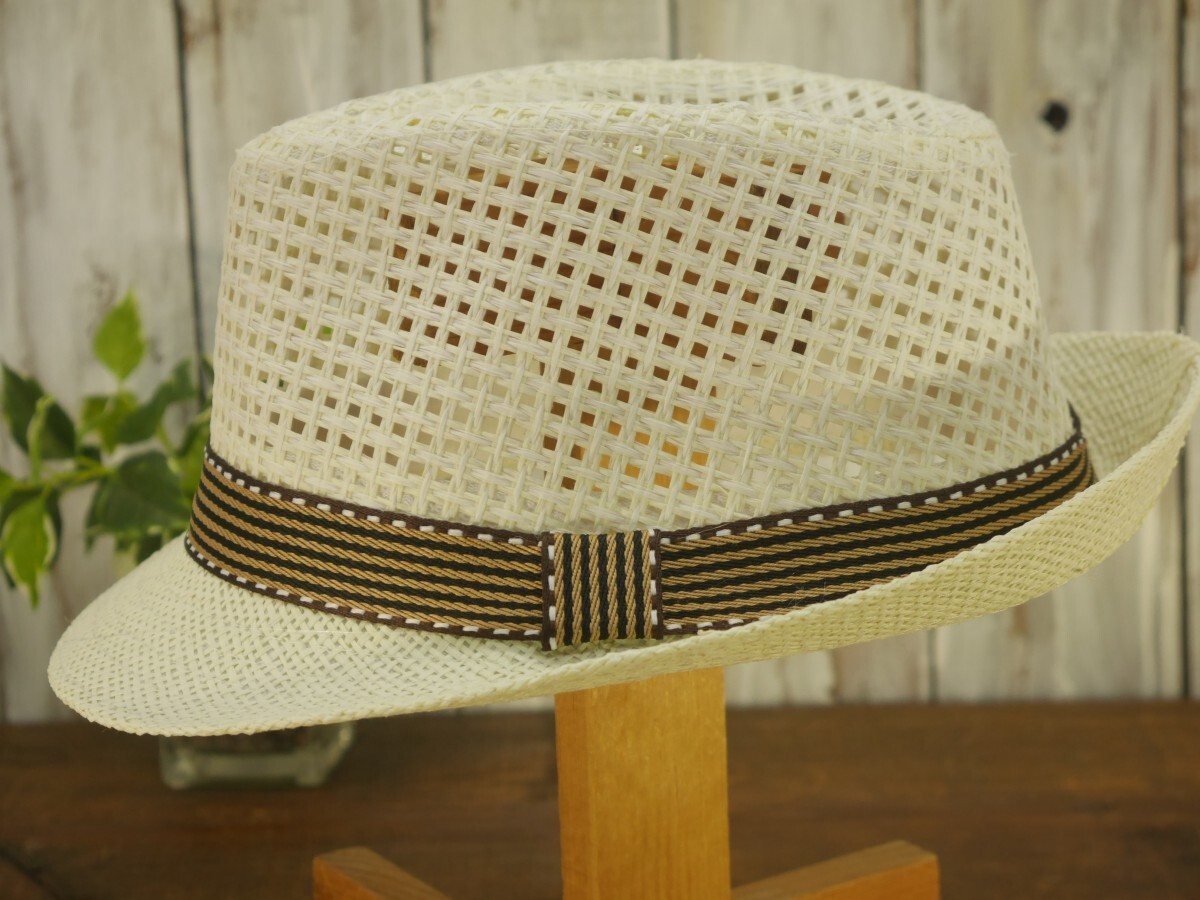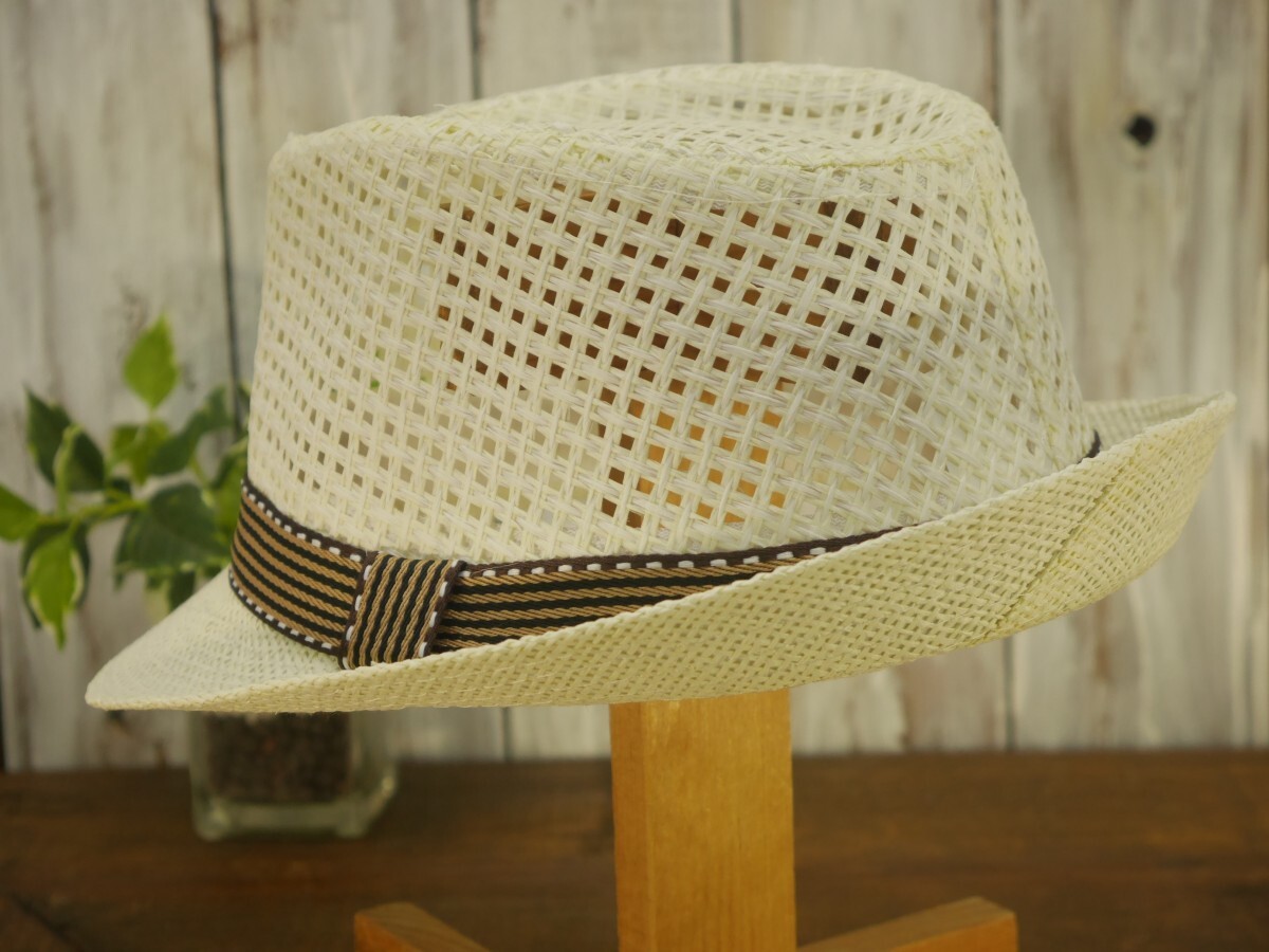 全国一律送料450円 編み込みメッシュ ストローハット アイボリー フェドラハット男女OK パナマ ボルサリーノ 麦わら 中折れ
