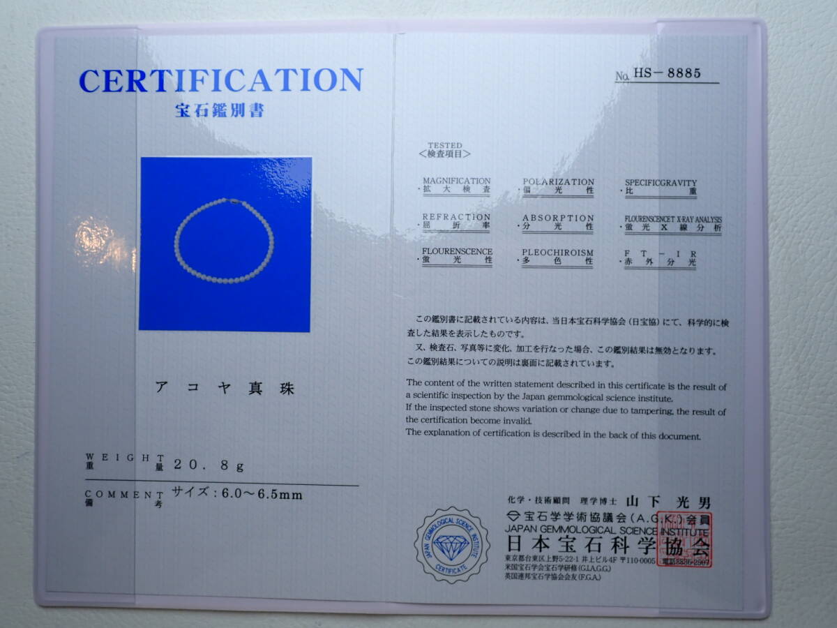 2●アコヤ真珠 ネックレス 6.0~6.5mm 20.8g 鑑別書付