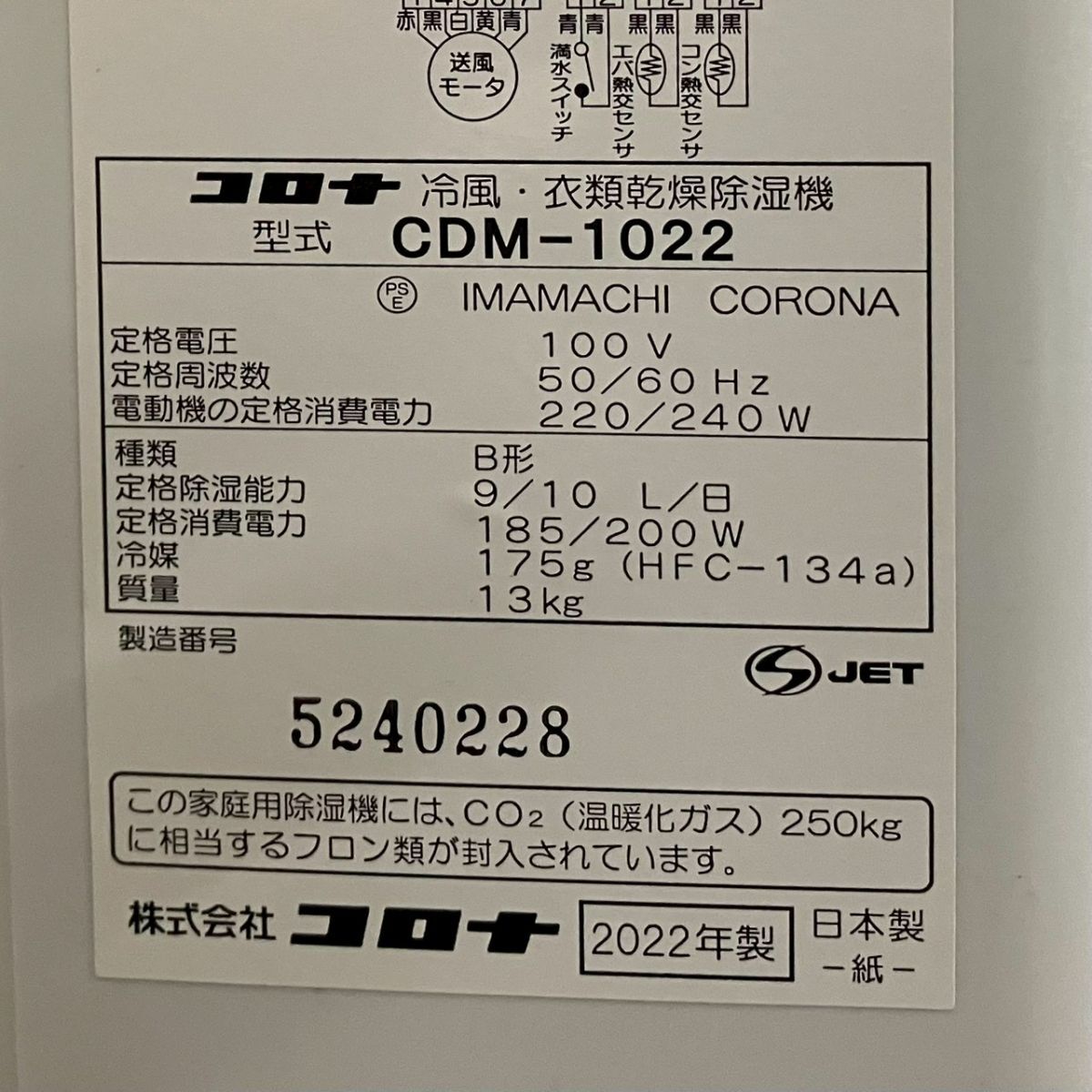 AKM122H CORONA コロナ 冷風・衣類乾燥除湿器 どこでもクーラー CDM-1022 通電確認済 2022年製 ホワイト×ブルー系 | |||