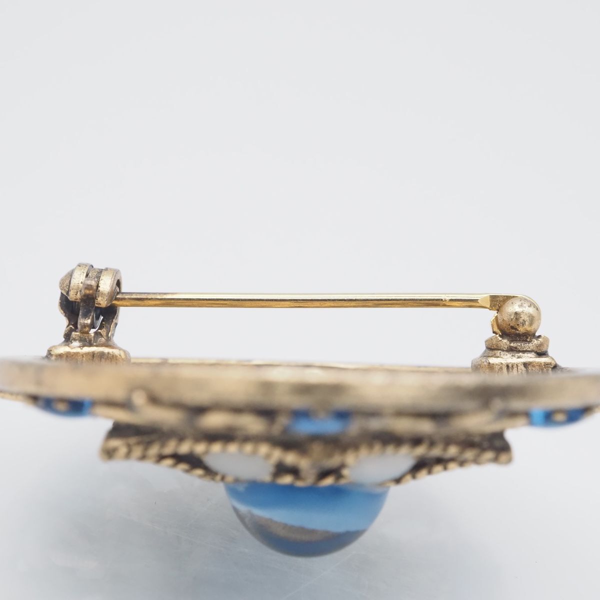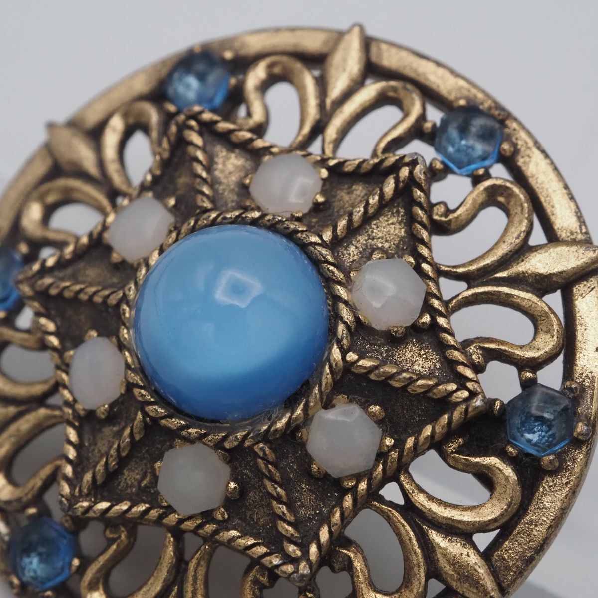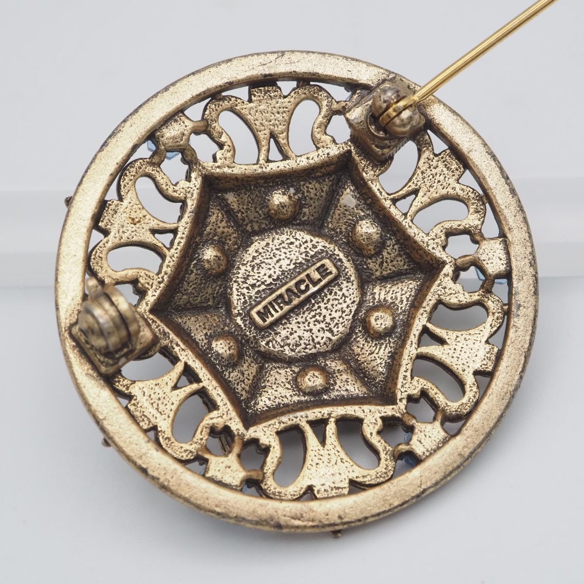 H394 イギリス ヴィンテージ MIRACLE ミラクル ブローチ 天然石風 ゴールド デザイン 英国 アンティーク