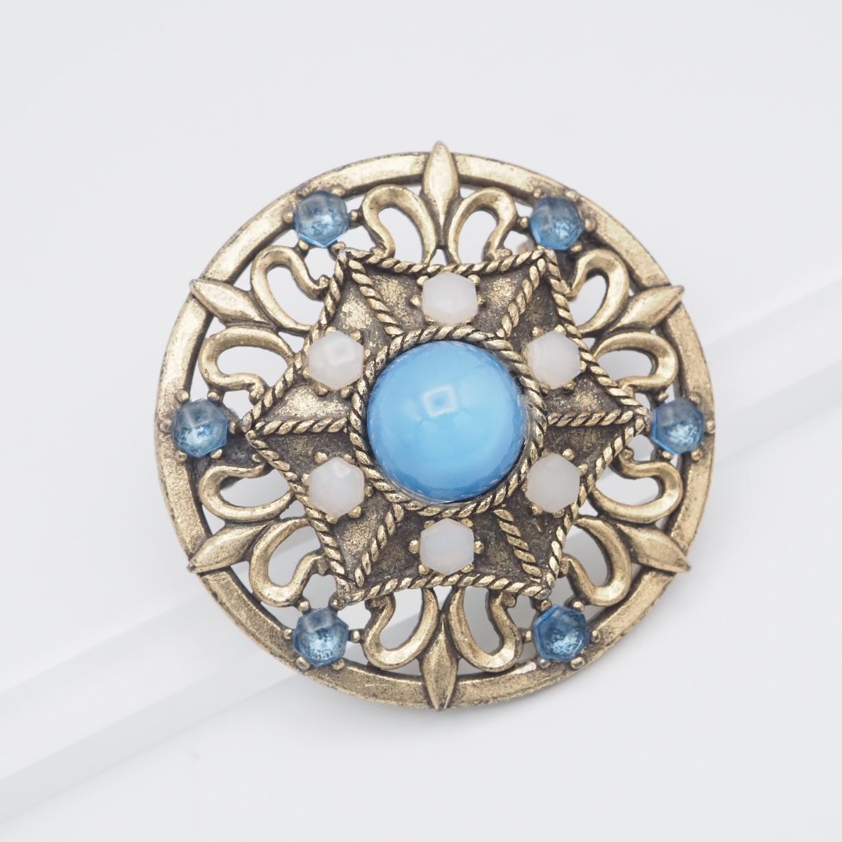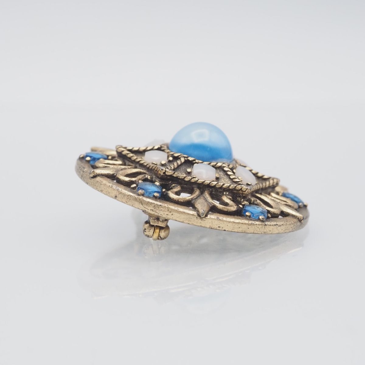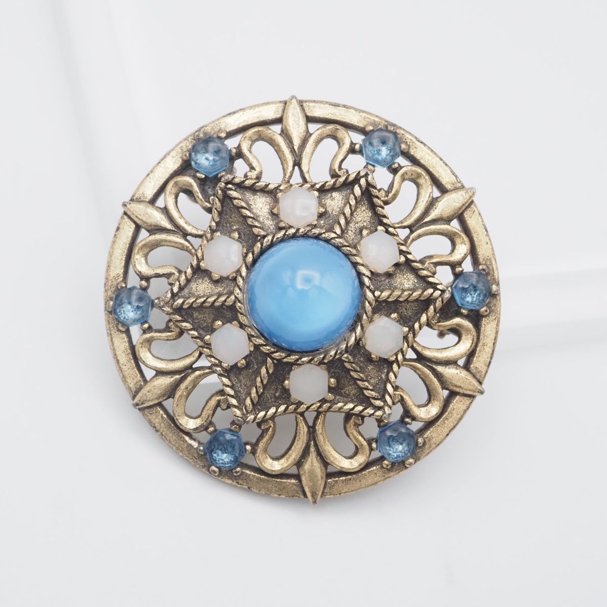 H394 イギリス ヴィンテージ MIRACLE ミラクル ブローチ 天然石風 ゴールド デザイン 英国 アンティーク