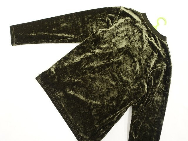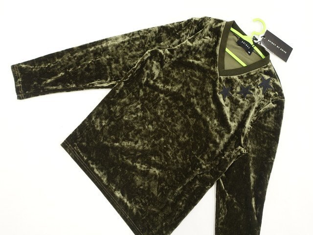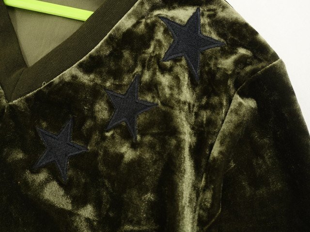 長袖 Vネック ベロアカットソー 150 グリーンカーキ地 ブラック 星型刺しゅう