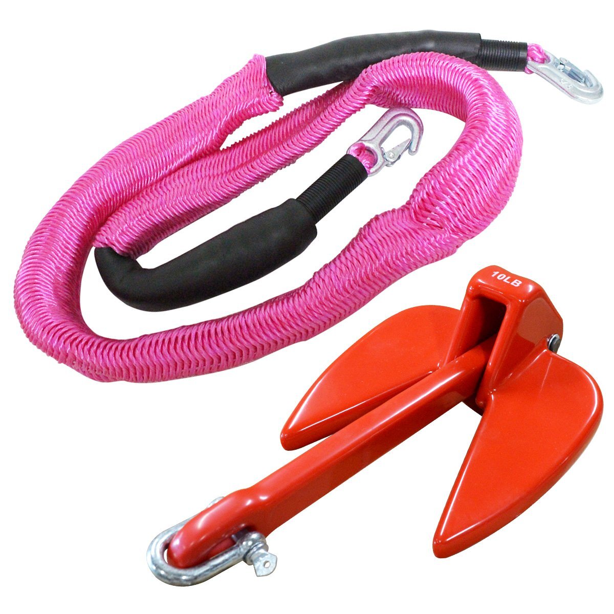 【新品即納】『伸縮ロープ/アンカーセット』爪型 アンカー 10LBS 4.5kg 赤 レッド 6M フロート のびのび アンカー ロープ ピンク