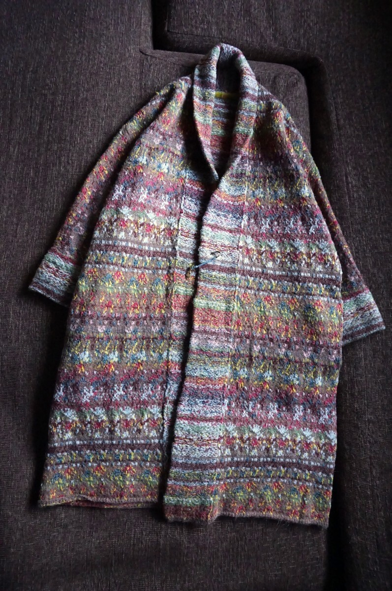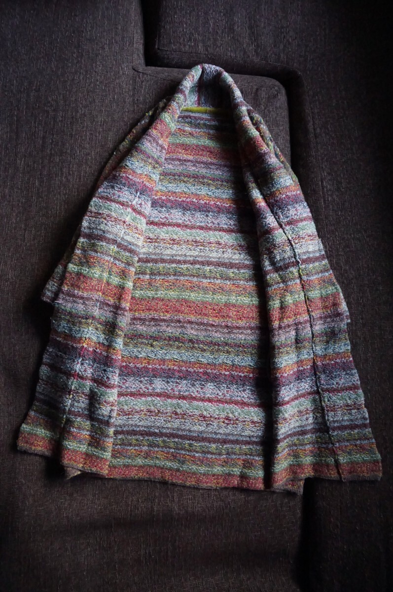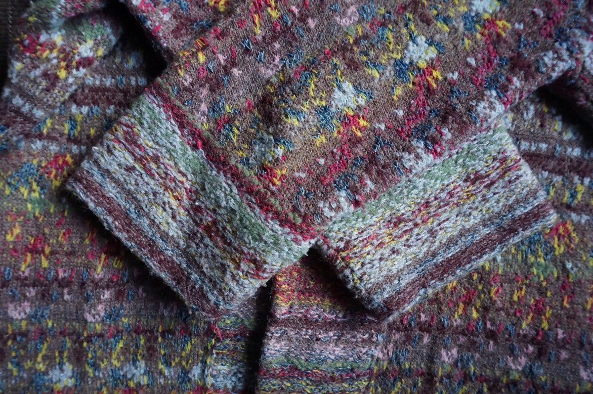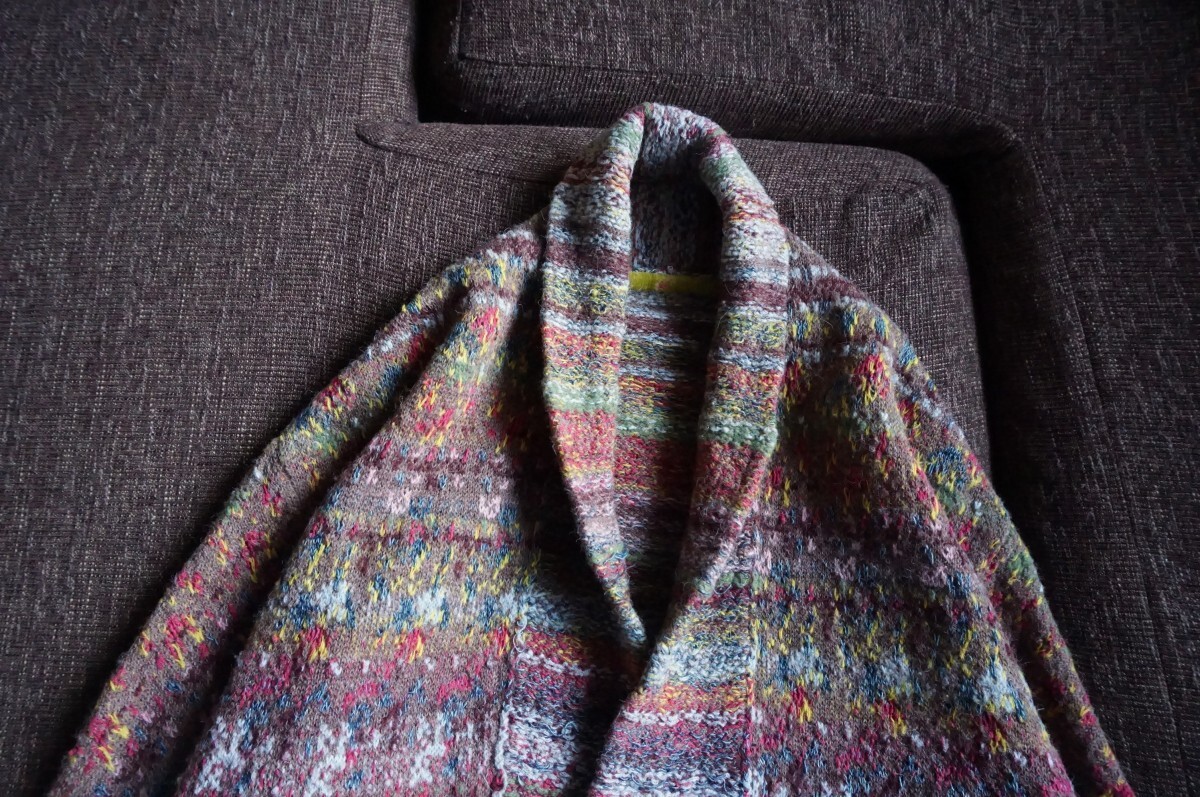 ウールをベースに、藍染め糸や高級なアルパカ糸を使った、華やかで贅沢な逸品。