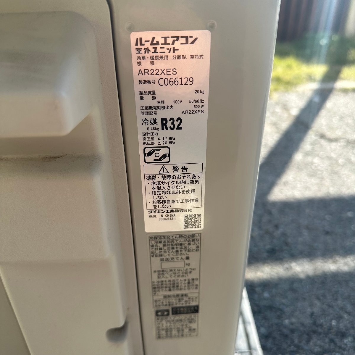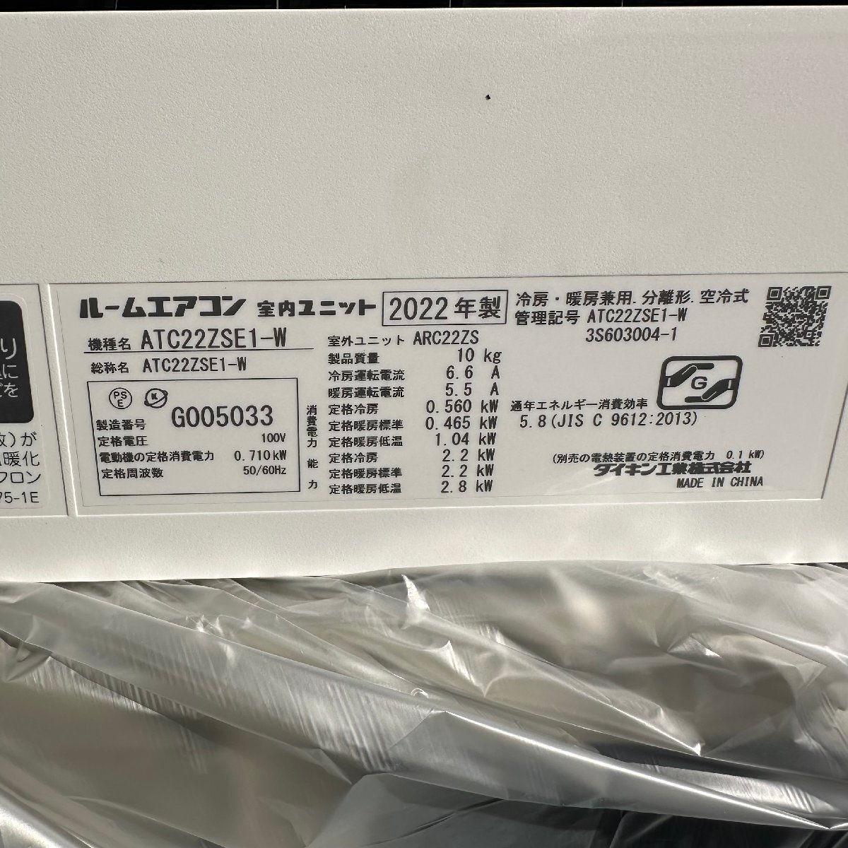 | θRθ 【家財便2個口発送】DAIKIN ルームエアコン 内機ATC22ZSE1-W 外機AR22XES 2.2kW6畳用 2022年製 リモコンなし θS-251130 | ||