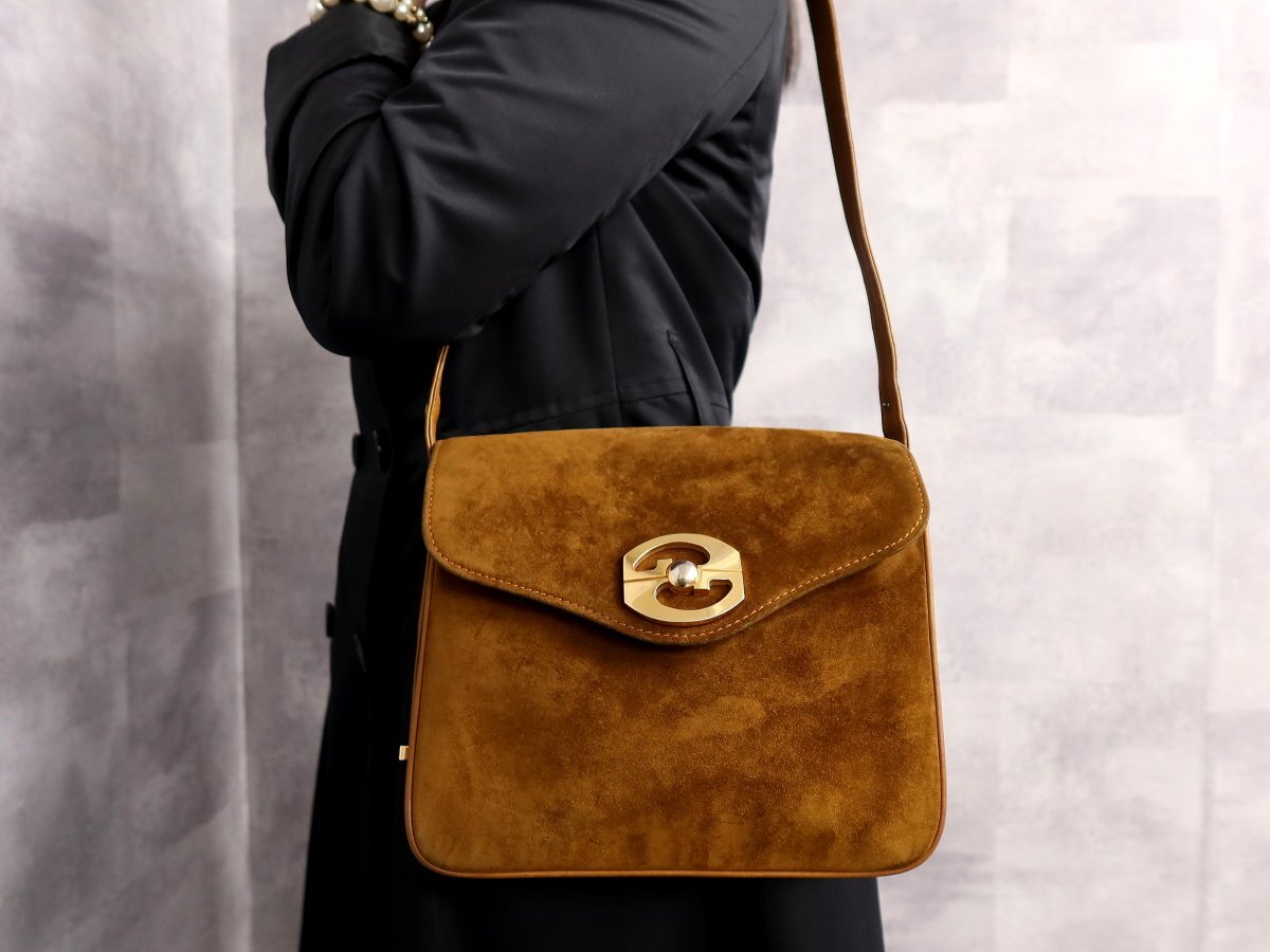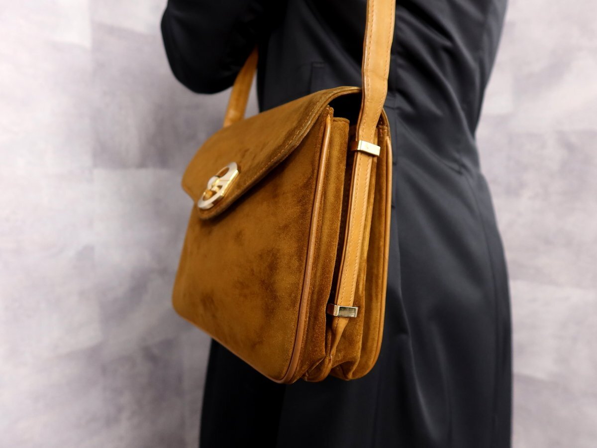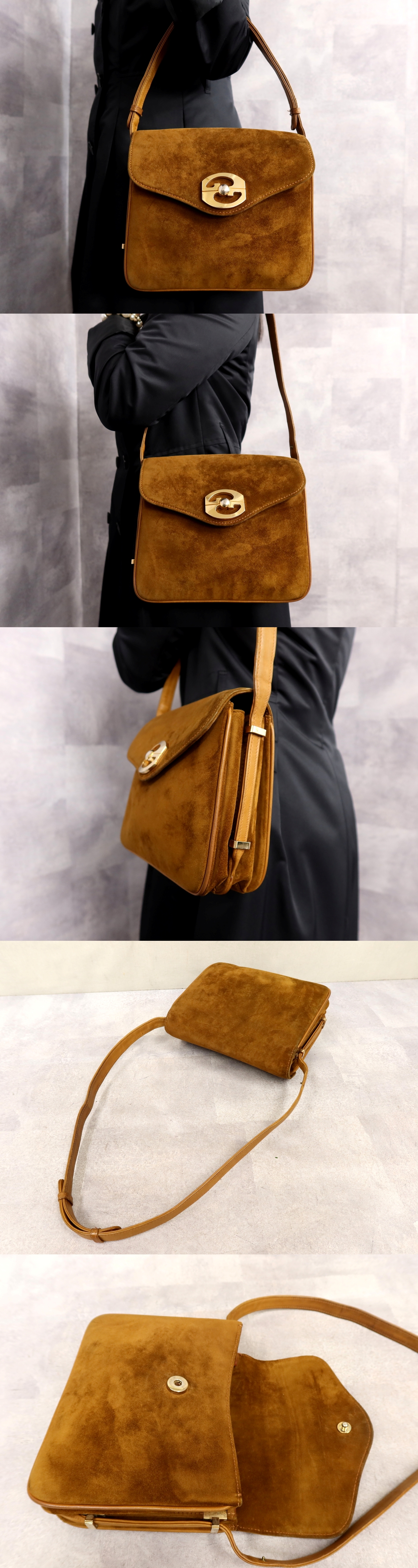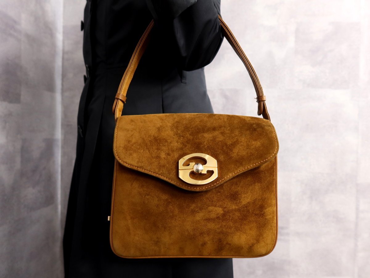 ●超美品●GUCCI グッチ●スエード レザー 本革●ハンド バッグ●ブラウン系●ゴールド金具●イタリア製●肩掛け●かばん●Js62688