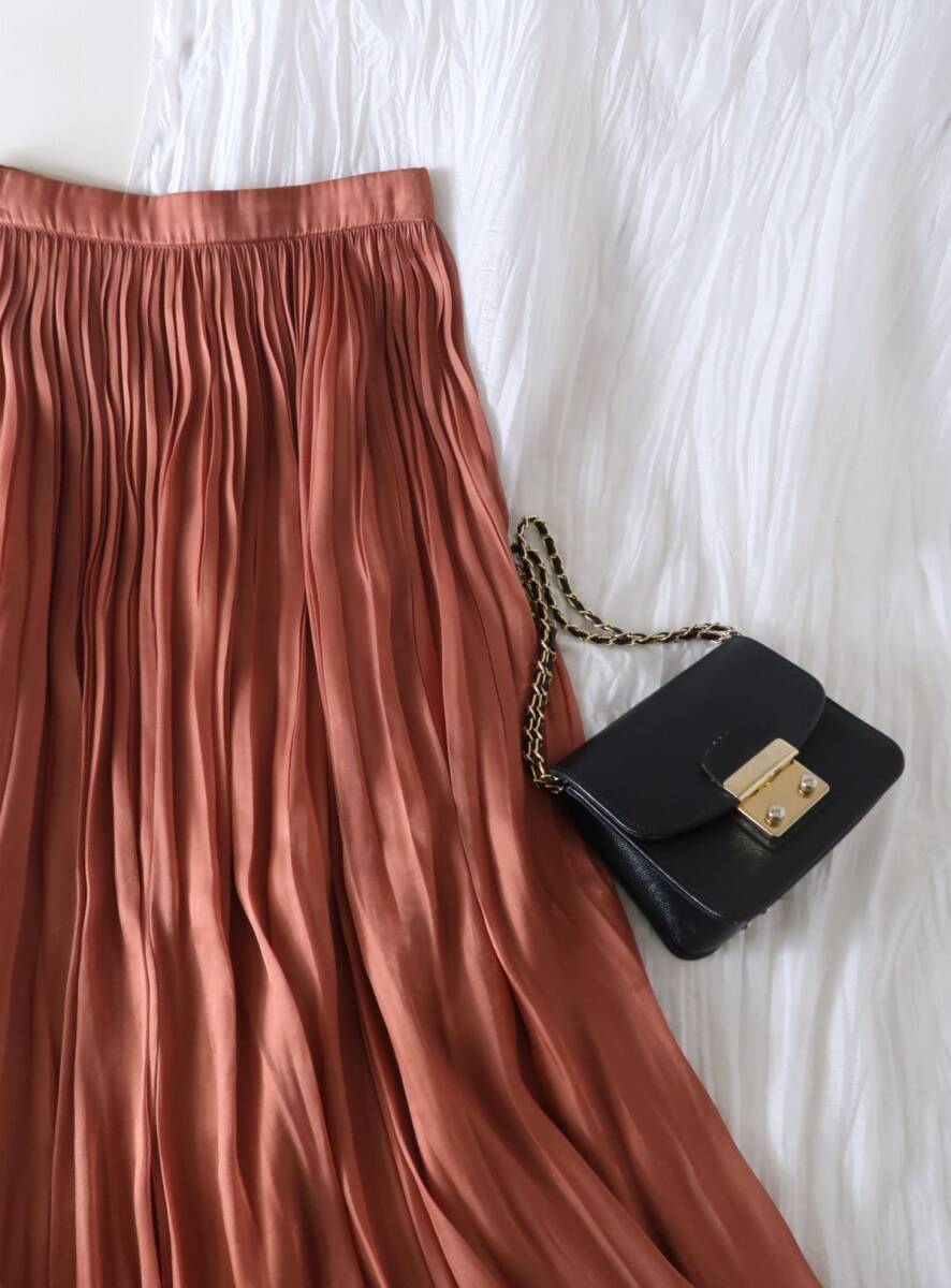 贅沢に生地を使いながらも広がりすぎない絶妙なシルエットで、歩く度に揺れる表情が魅力です。