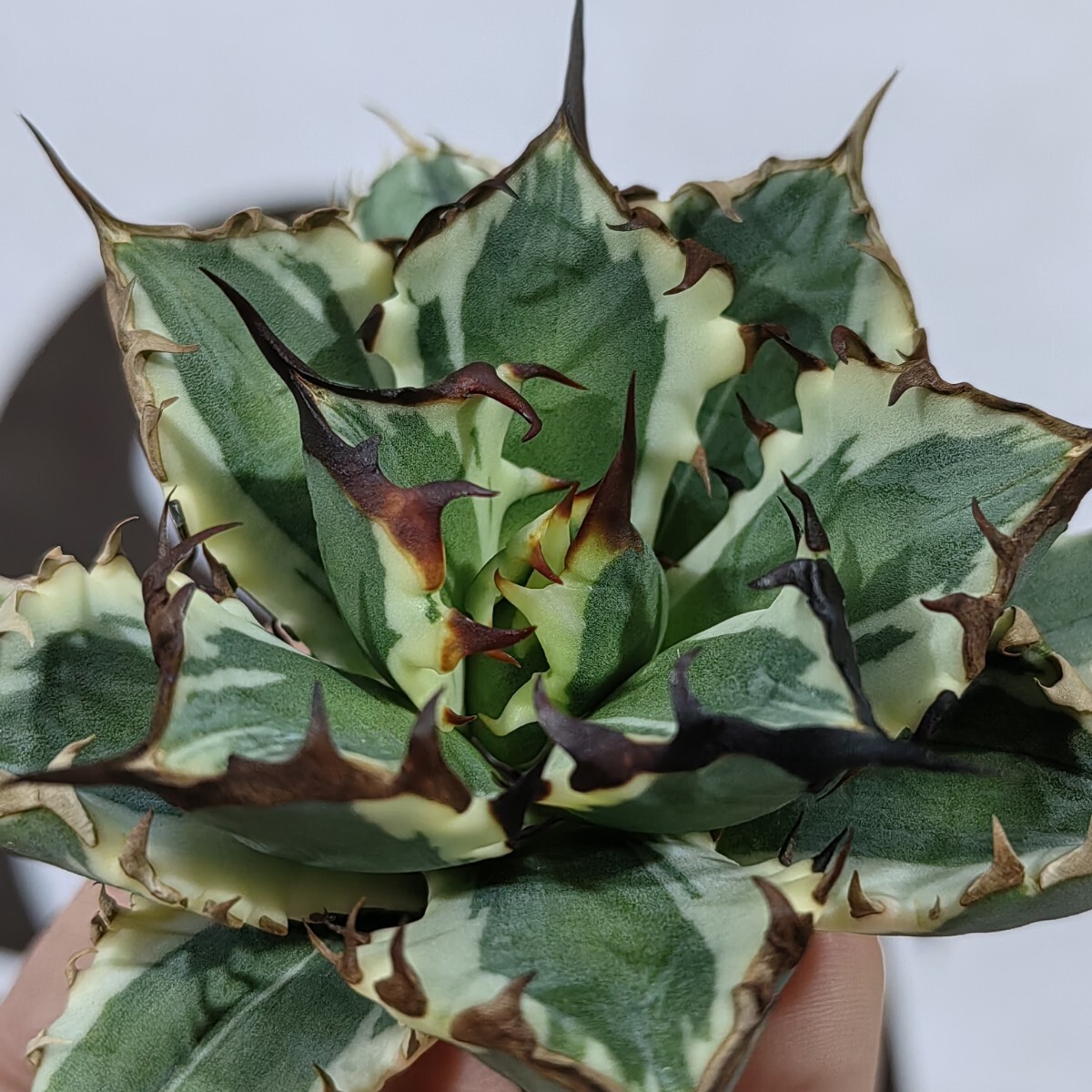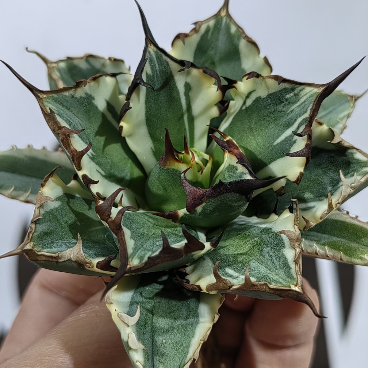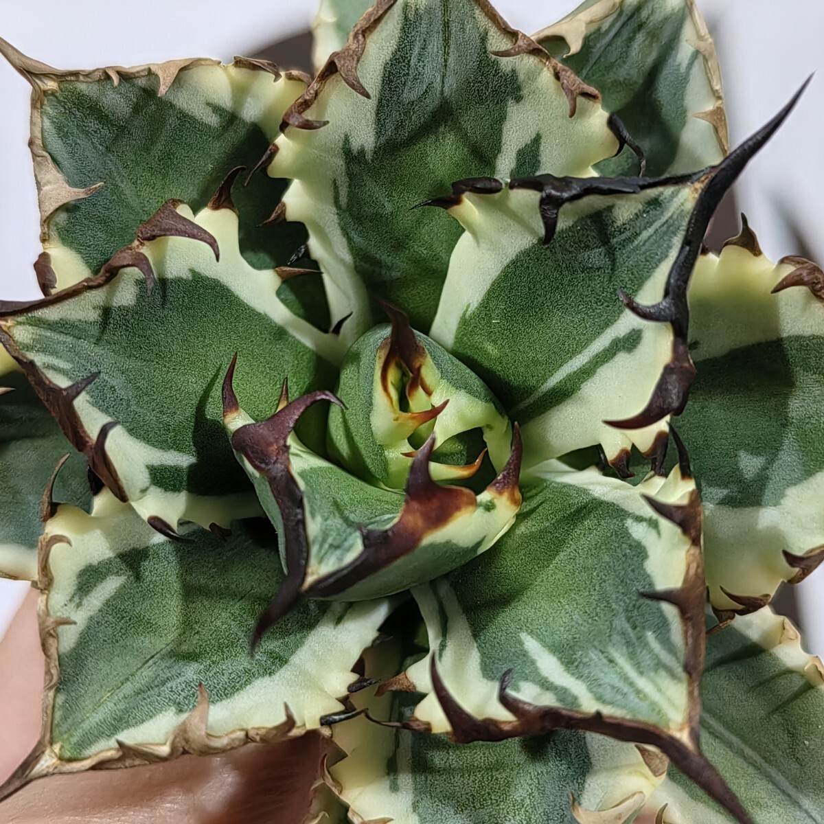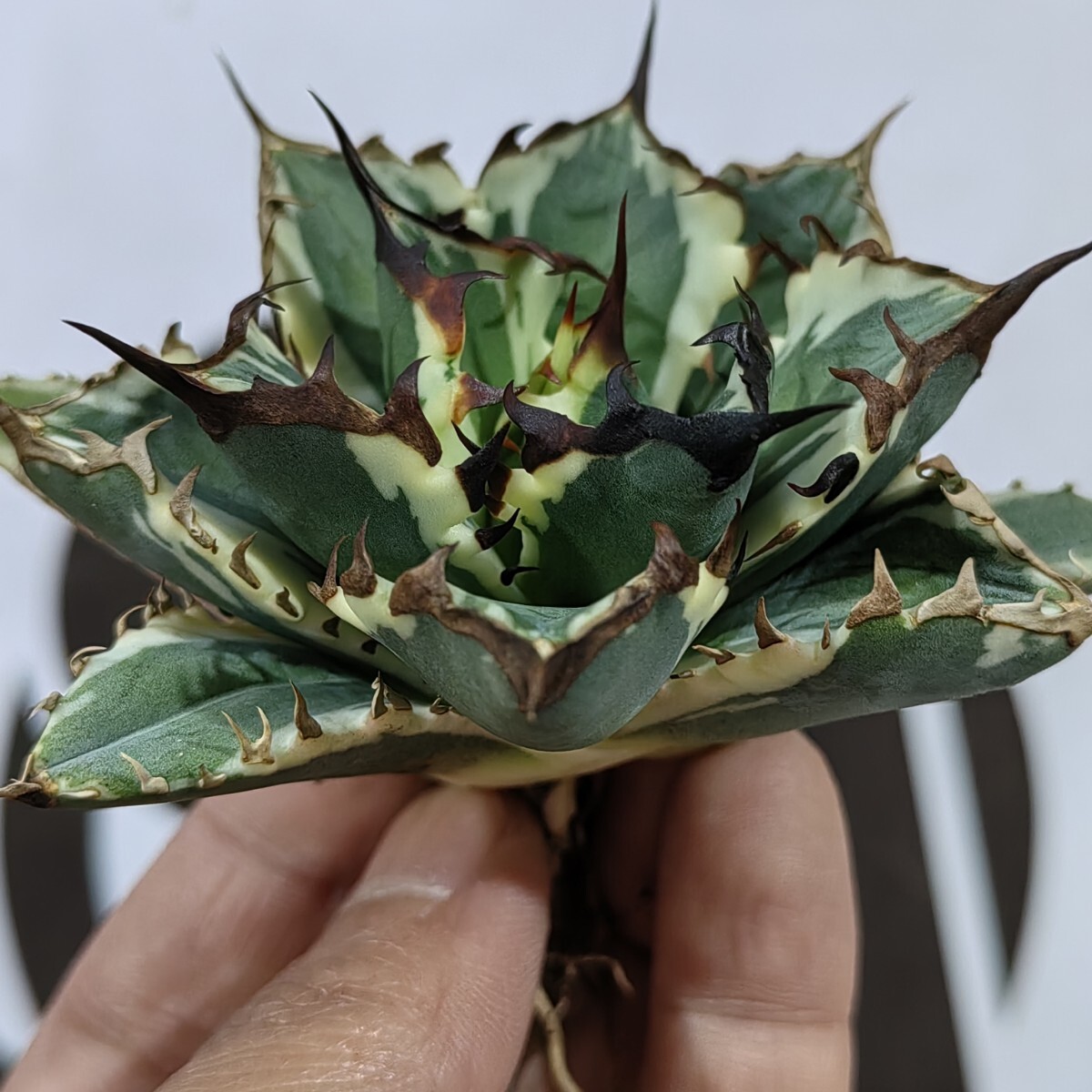 348【上澳園芸】アガベ チタノタ 姫巌竜錦 白覆輪斑 鮮明錦 (永久斑) 希少錦 特選良質株 LED管理株