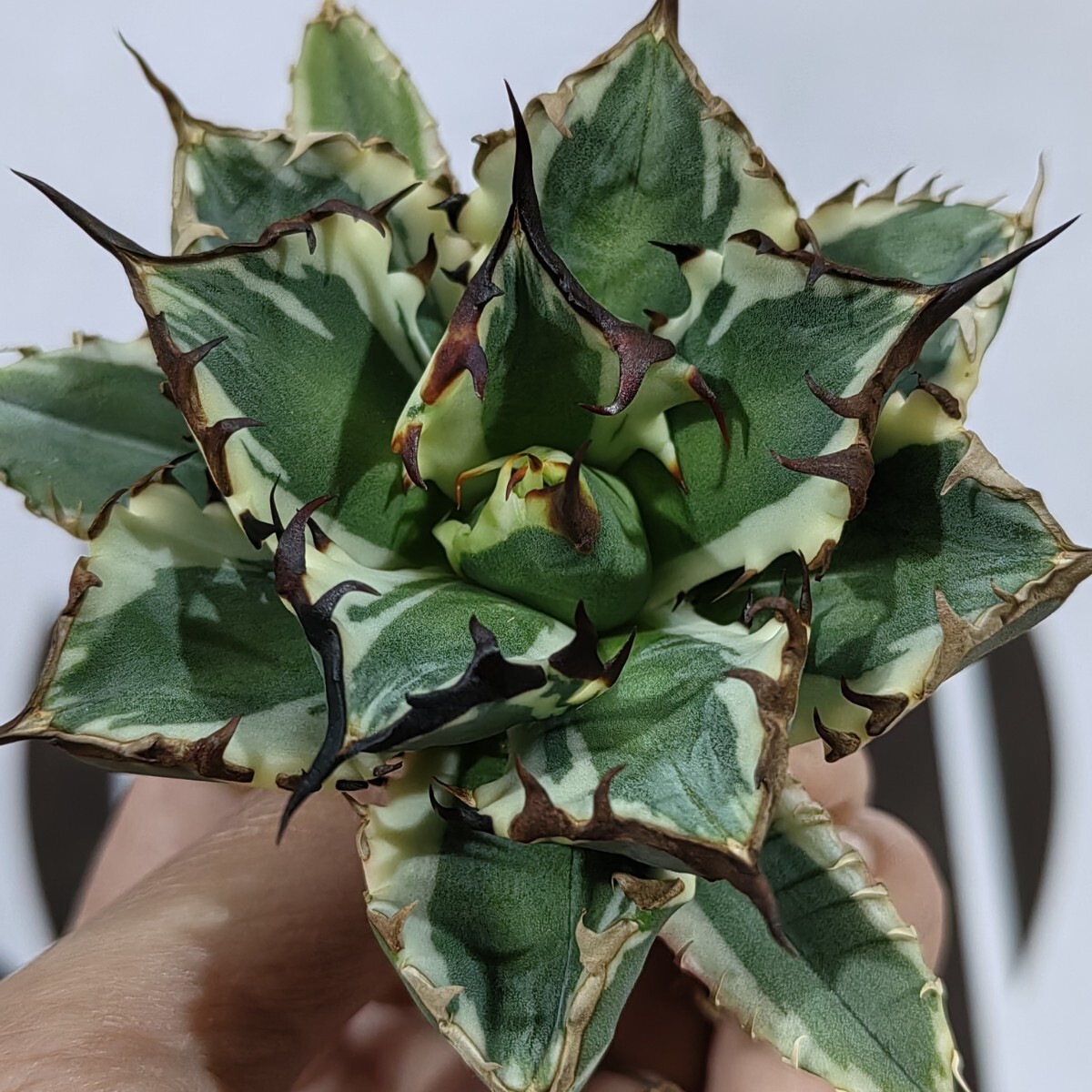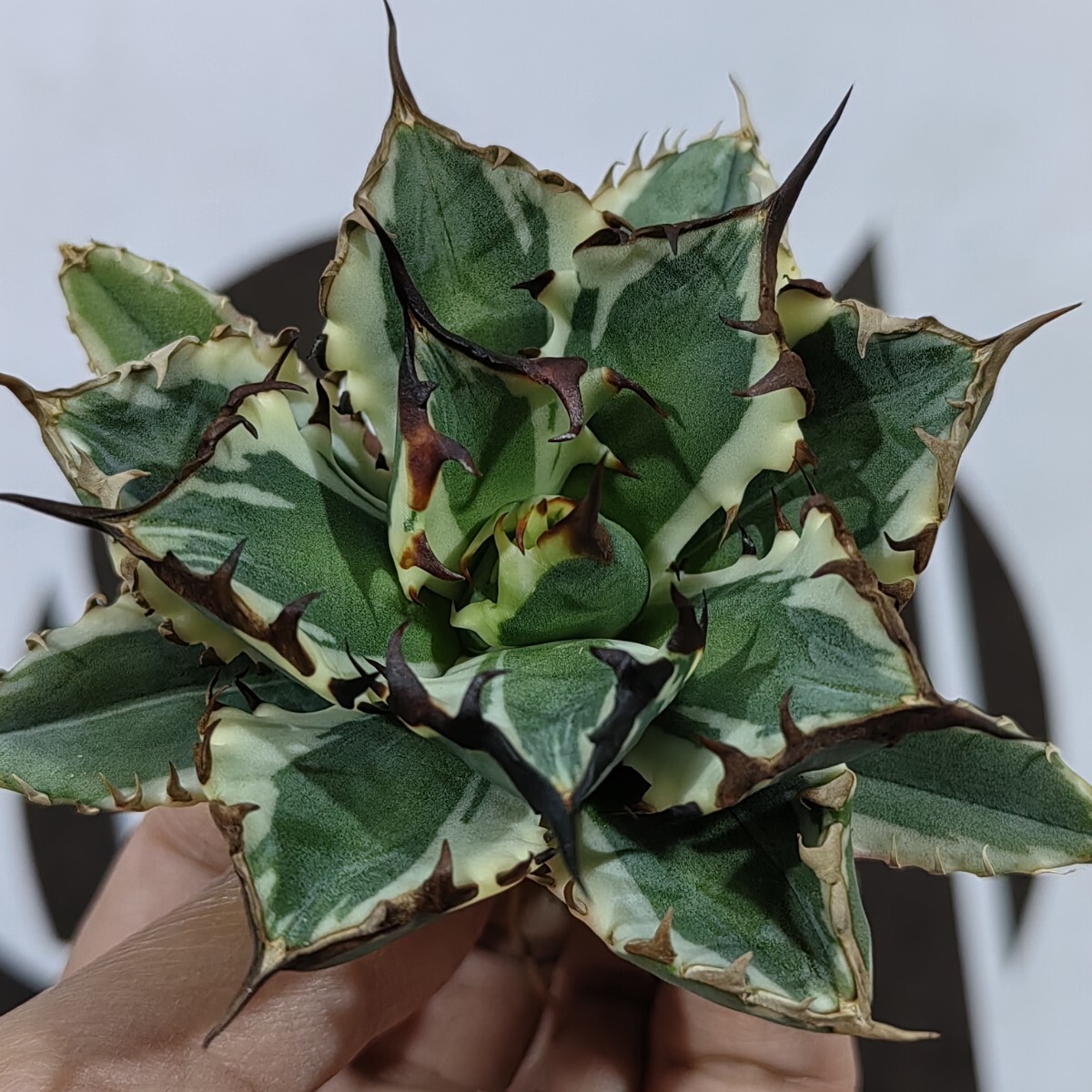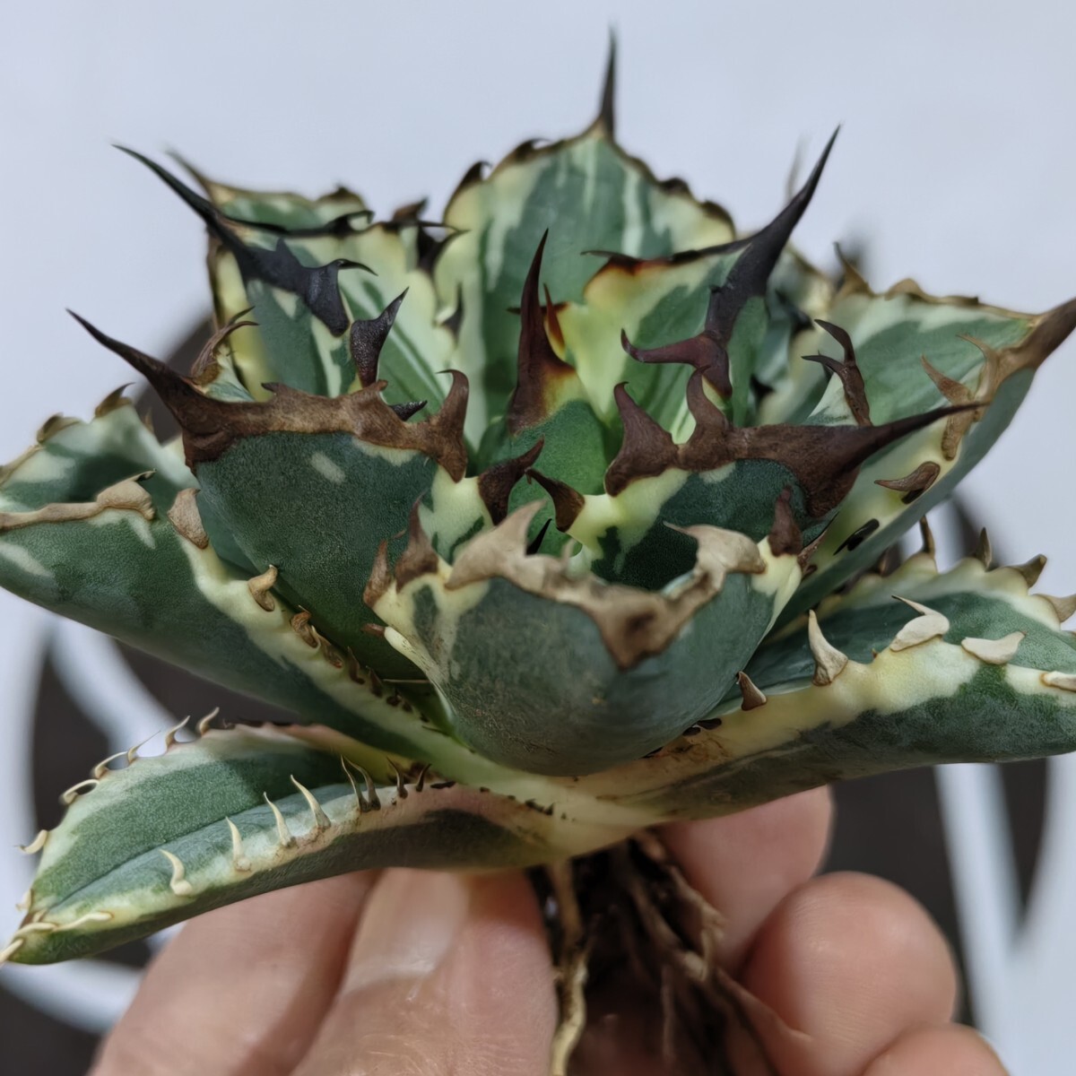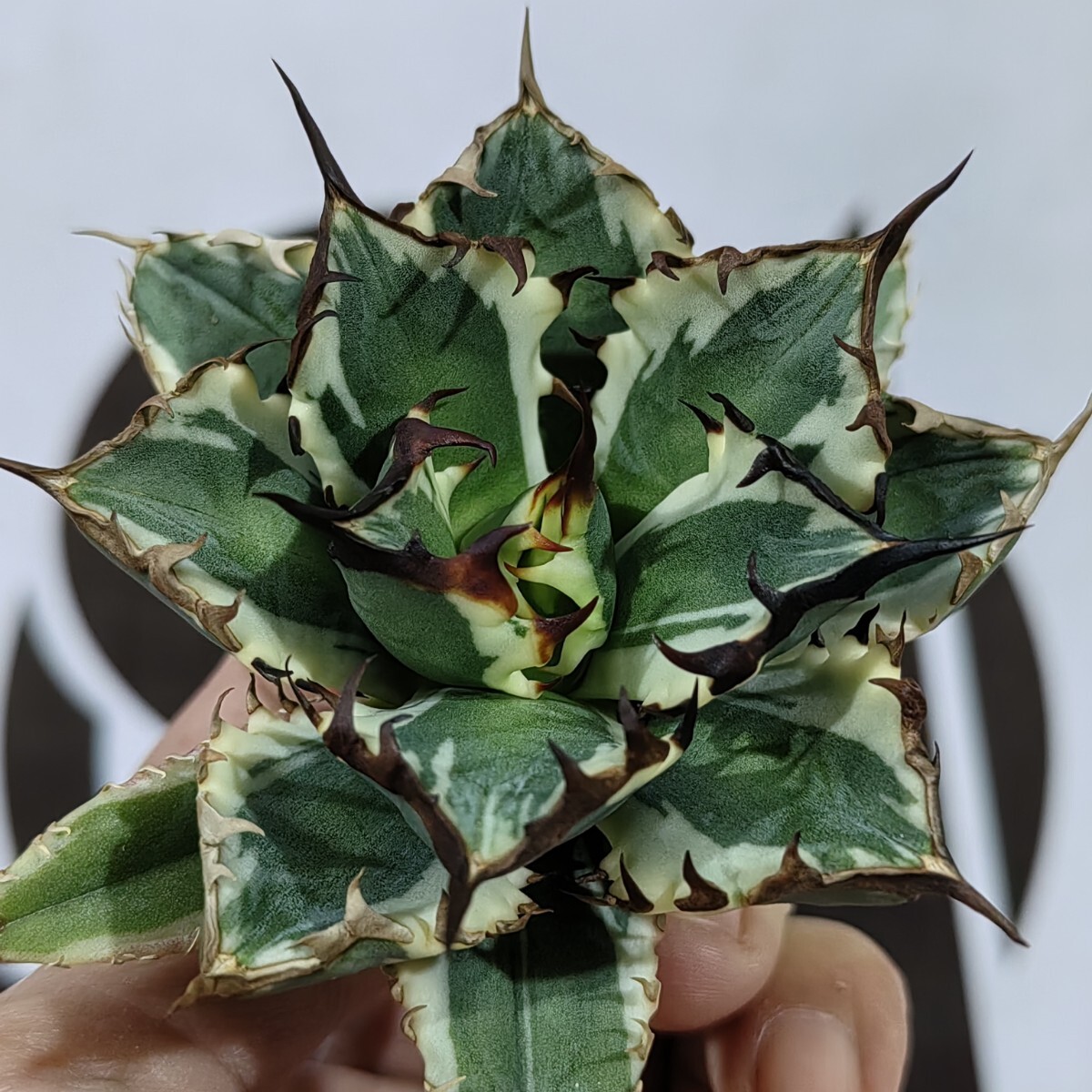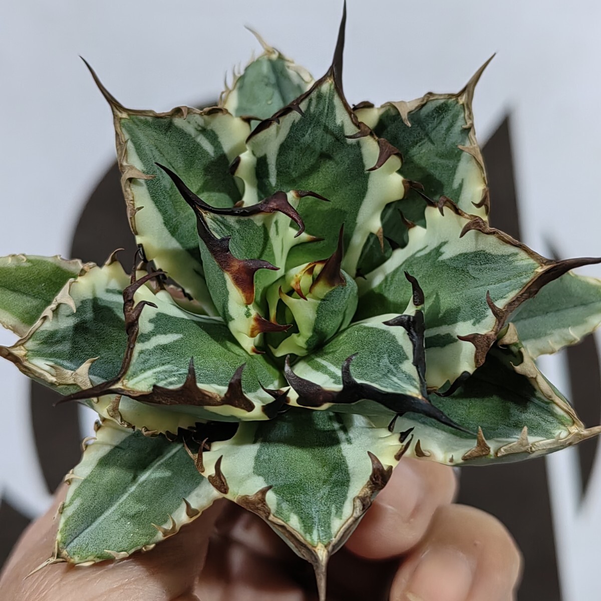 348【上澳園芸】アガベ チタノタ 姫巌竜錦 白覆輪斑 鮮明錦 (永久斑) 希少錦 特選良質株 LED管理株