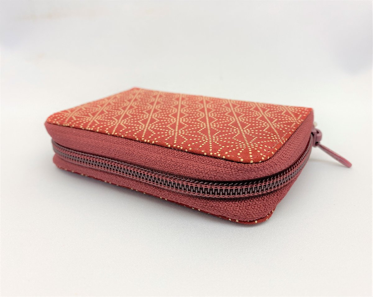 【三枝堂】新品 印伝カードケース2523 赤地白漆 20枚収納可能! ☆送料は当社負担☆1点限り☆