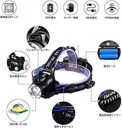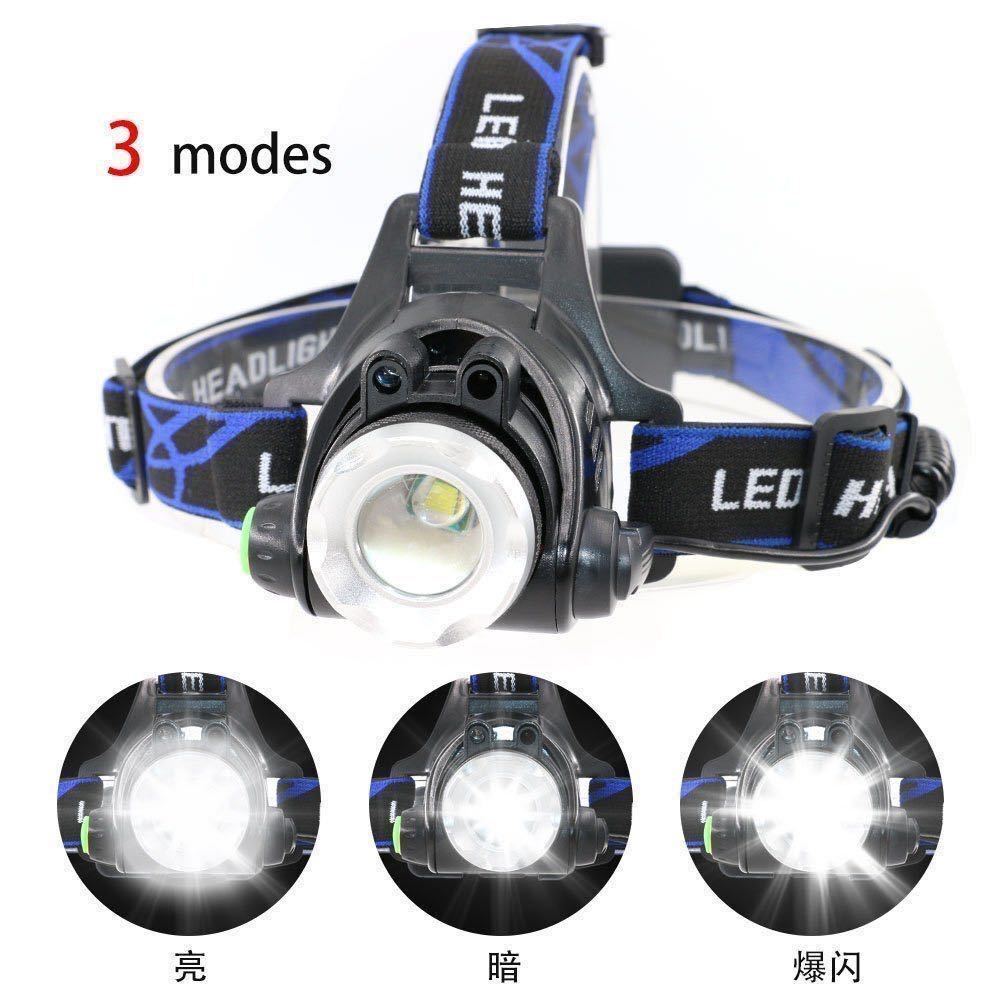 セット:ヘッドライト、USBケーブル、18650リチウムイオンバッテリ*2。