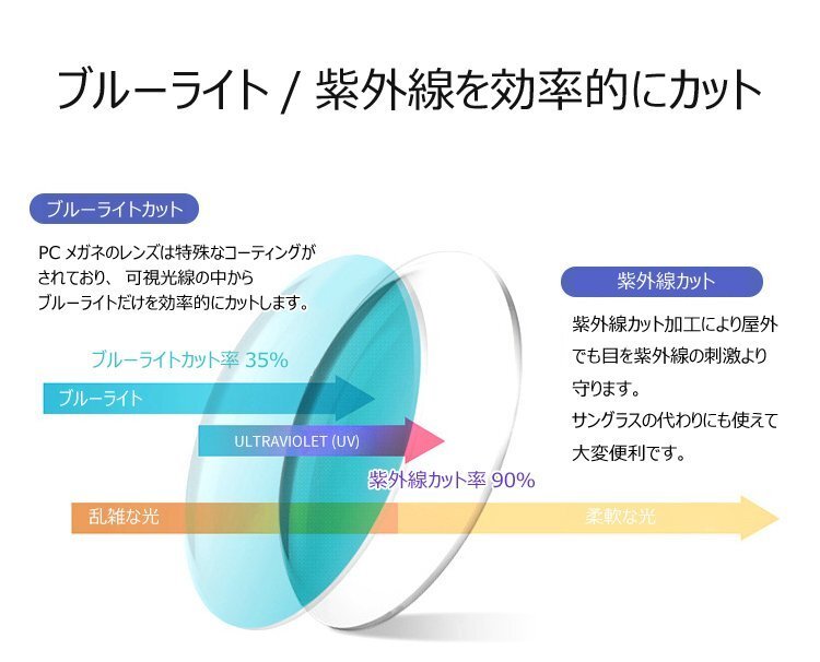 ブルーライト率35%カットのクリアレンズ 自然に近い色味です。