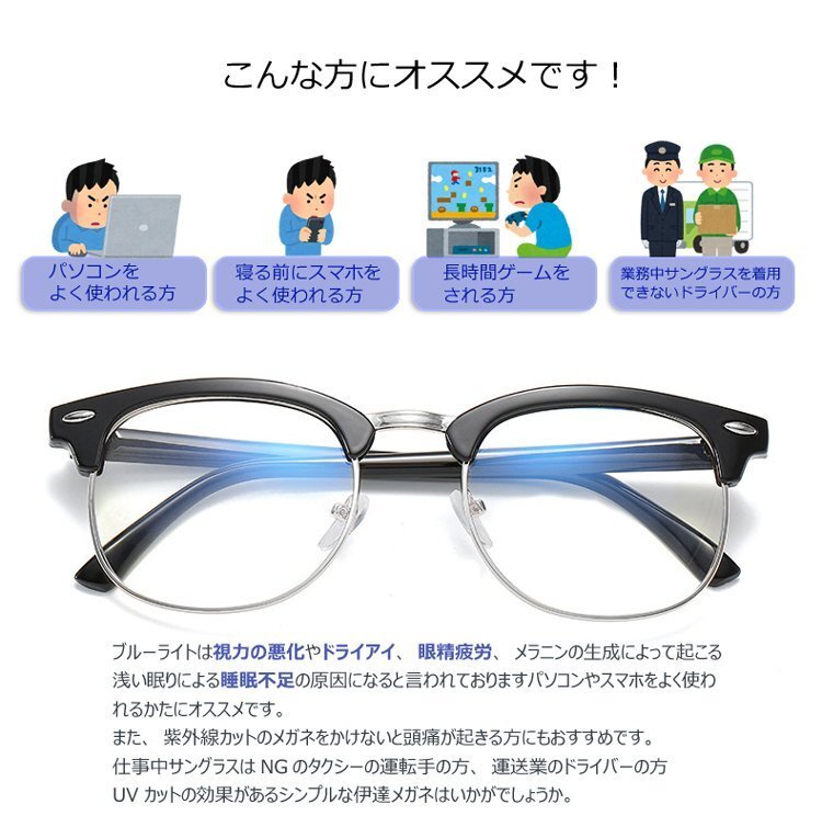 ◆UVカット UV400 ブルーライトカット PCメガネ 度数無し おしゃれ パソコンメガネ 紫外線カット メンズ レディース 男女兼用 眼精疲労 伊達眼鏡 紫外線対策 CMUV3016