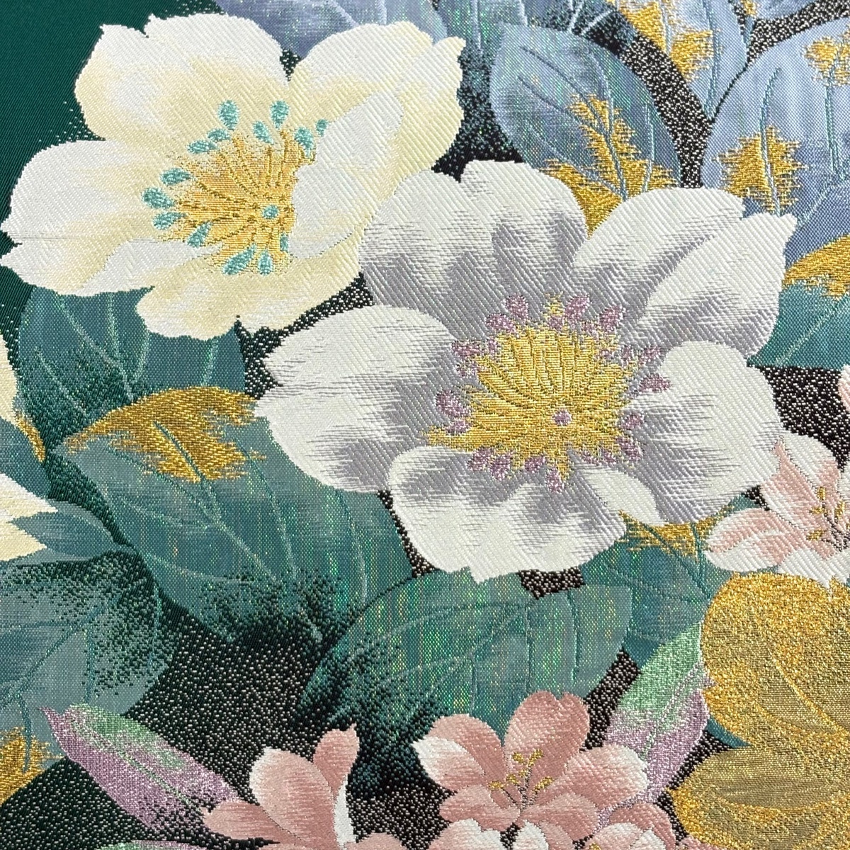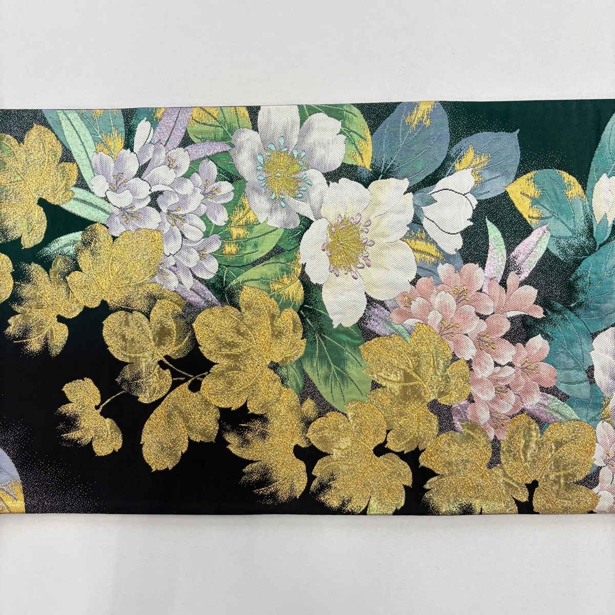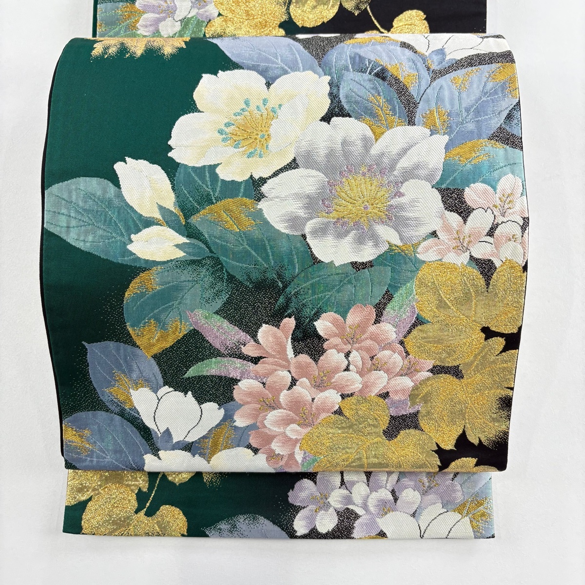 | 袋帯 美品 秀品 草花 葉柄 金糸 箔 緑 六通 正絹 【中古】 |