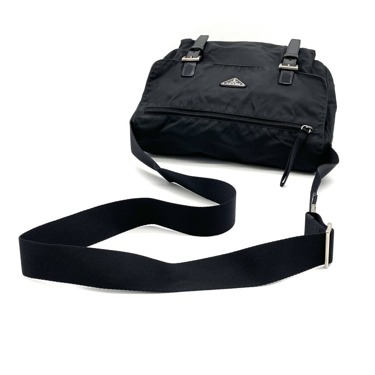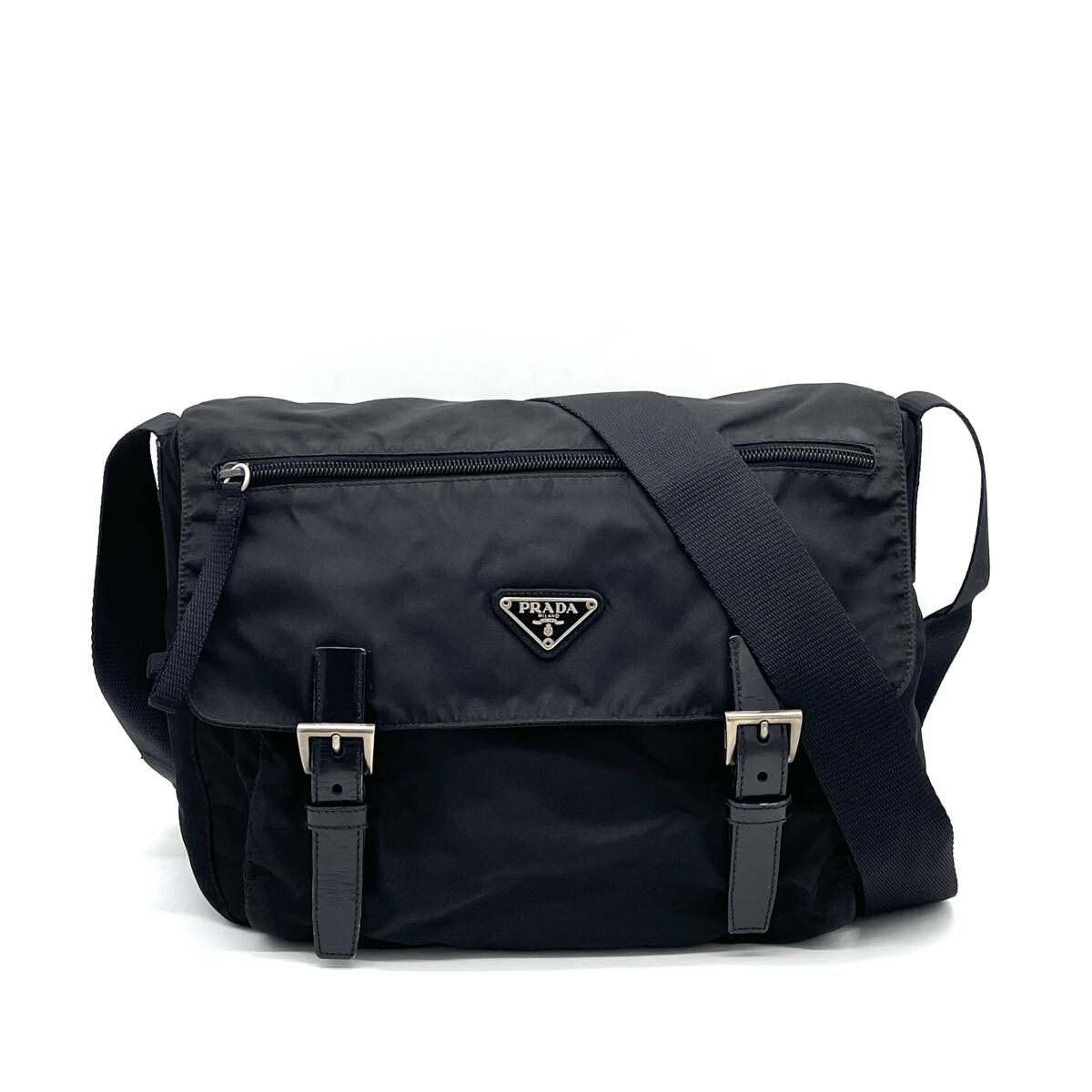 | PRADA テスートナイロン レザー メッセンジャー ショルダーバッグ クロスボディ ブラック | |