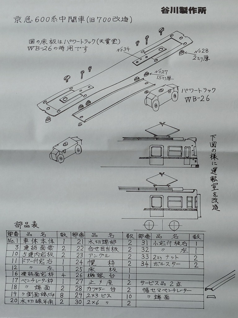 谷川製作所製 京浜急行 旧600形車体バラキット 組替・未製作品
