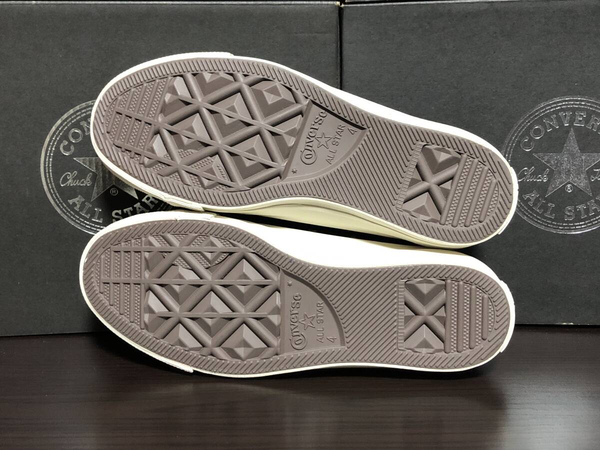 アッパーと同色の、ラバー素材による織りネームと丸 シューレースを使用したシンプルなオールスター。クリーム色のソールがナチュラルな雰囲気を醸し出しています。