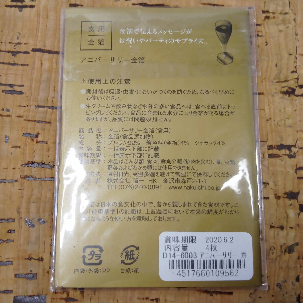 こちらは、**「寿」の文字にカットされた食用金箔(4枚入り)**です。