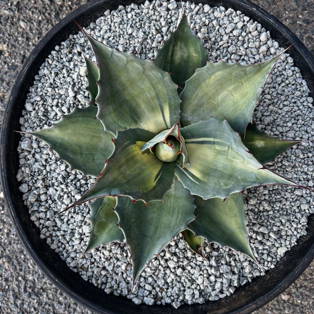 ※osp育成株に関しては淡路島で伸ばさず健康に育成してきた個体になります。ospのある淡路島は風が強く日照時間が長い事で知られており、アガベの育成に向いています。ospでは月に2回殺虫と殺菌を行っています。海外からのベアルート個体と比べ状態が安定しており鮮度が違います。発根の面でのリスクも少ないです。