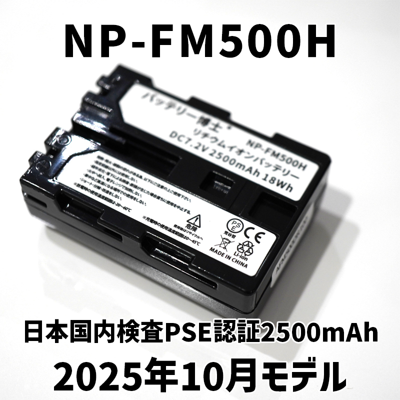 PSE認証2025年10月モデル 1個 NP-FM500H 互換バッテリー 2500mAh デジタル一眼カメラ α アルファ SLT-A99V A77V A65V A58M A57