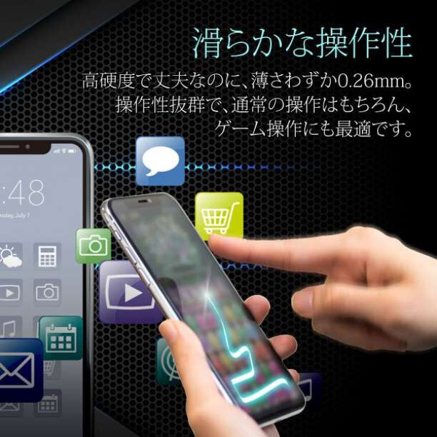 ・液晶画面に当たる部分は硬度9H強化ガラスフィルムで
