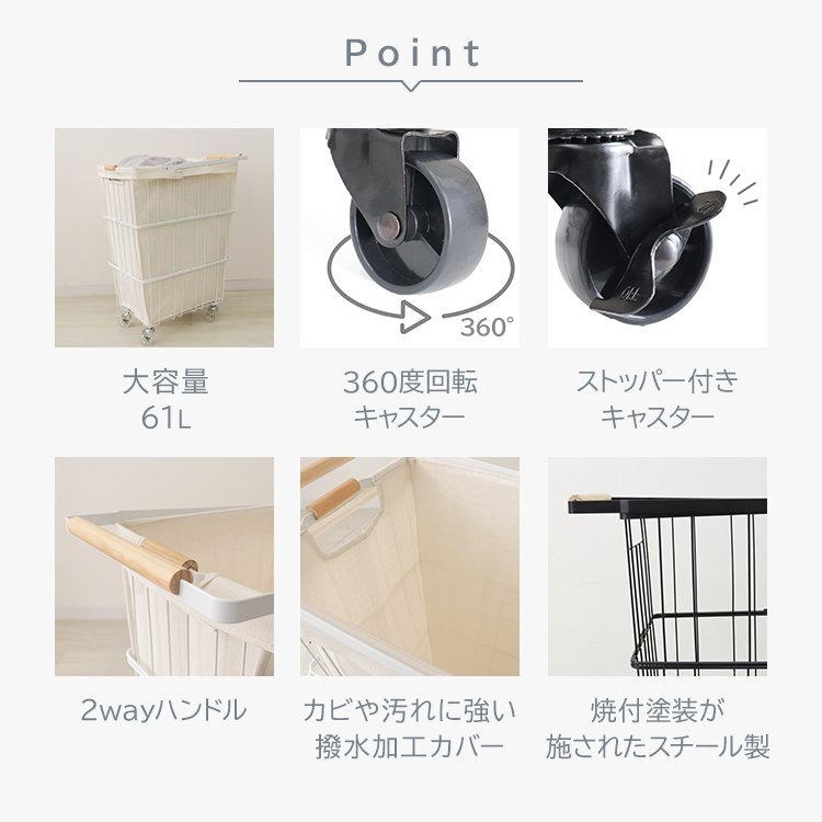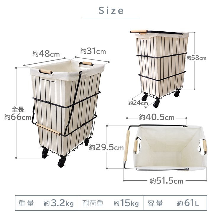 \大容量61Lでたっぷり収納!取っ手付き&360度回転キャスターで移動もラクラク/ 開口部が広いので物が取り出しやすく 耐荷重約15kgと家族分の洗濯ものもまとめて入ります。 シンプルなデザインなのでお部屋のインテリアにも馴染みます。 360度キャスター付きでスムーズに移動ができます。 ストッパー付きなので、安全面も安心◎ 洗濯ものが外から見えないので、クリーニングやコインランドリーに持っていく際にも便利です。 ファブリックカバーは内側にラミネート生地を使用。カビや汚れに強い撥水加工を施しています。 丈夫なスチールフレームなので、さびにくく、長くお使い頂けます。 【商品仕様】 ・カラー:ホワイト ・サイズ:(約)幅31x奥行48x高さ66cm ・重量:(約)3.2kg ・耐荷重:(約)15kg ・容量:(約)61L ・素材:スチール(粉体塗装)、他 【注意事項】 ・スチール製の為、浴室ではご使用いただけません。 ・商品は、モニターによって色合いが異なって見える場合があります。 ・仕様・デザインは改良のため予告なく変更することがあります。 (FAE006WH) |
