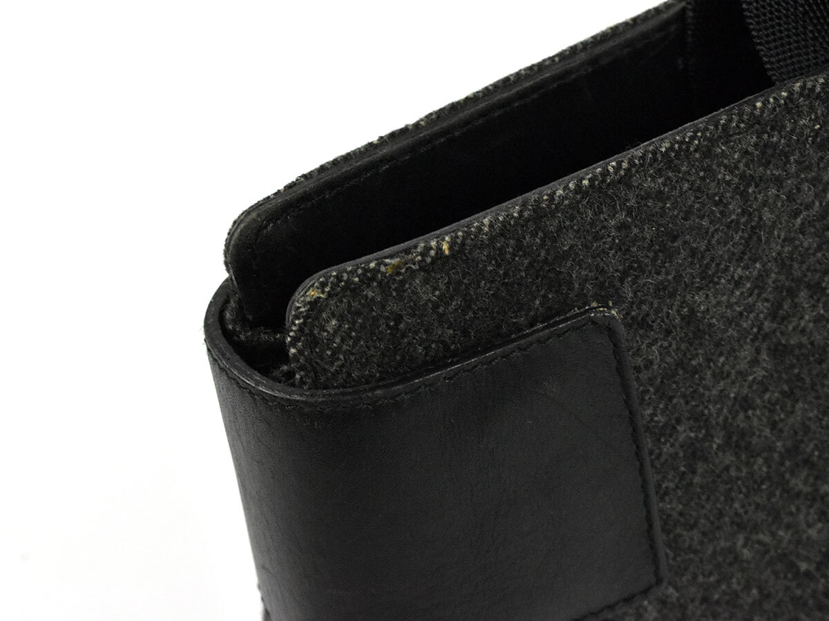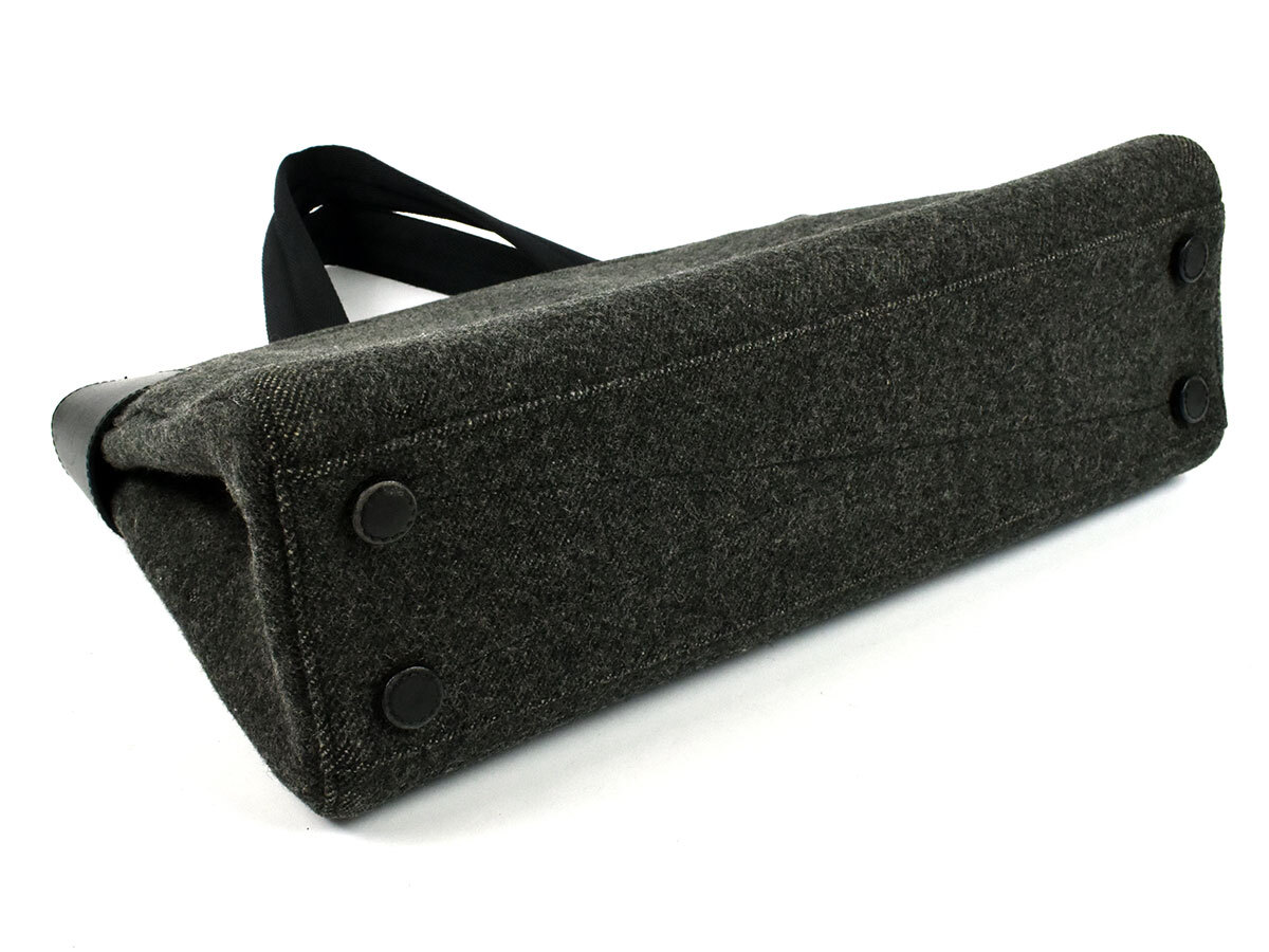 | 外側ウールの所々に穴、レザーにスレ・シワ・若干の剥がれ、持ち手にヨレ、内側所々にシミ、内側底面縫い目沿いに変色がございます。 やや使用感が窺えますが、ご使用には差し支えなく、まだまだお使いいただける商品です。 | |