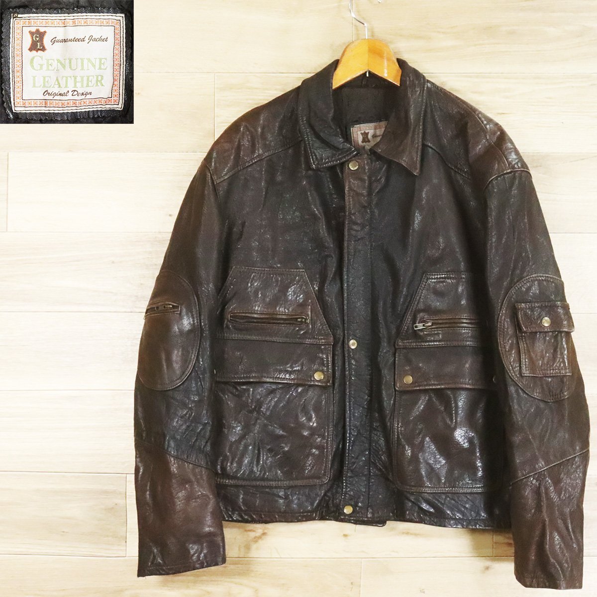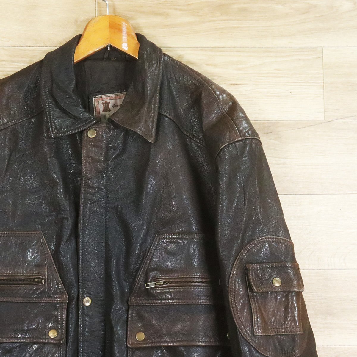 F8R/O9.18-10 ユーロ古着 レザーフライトジャケット 本革 レザージャケット レザーブルゾン 革ジャン 皮ジャン 52 メンズ