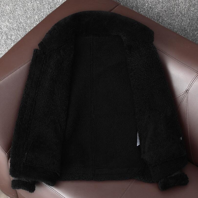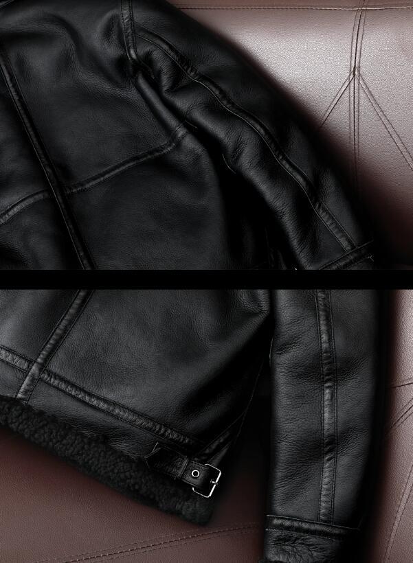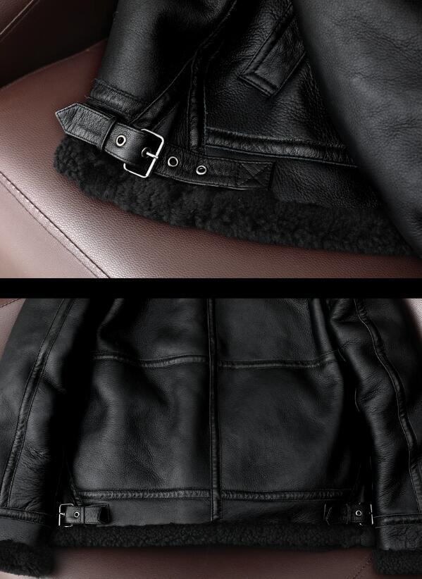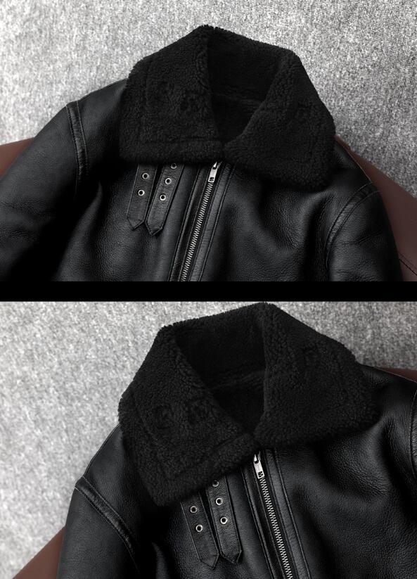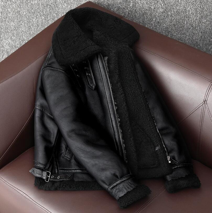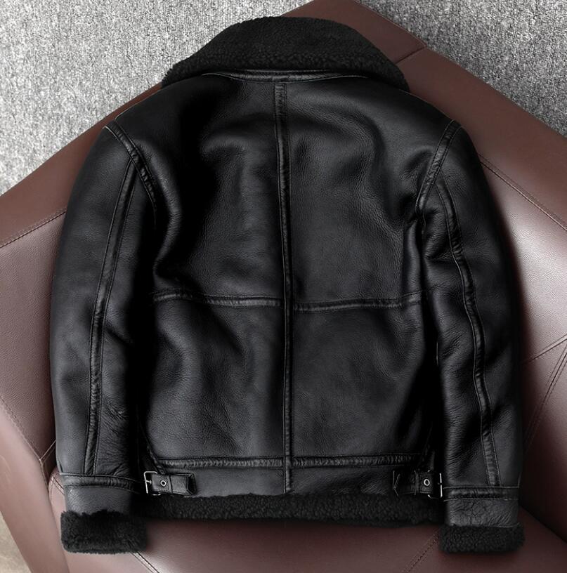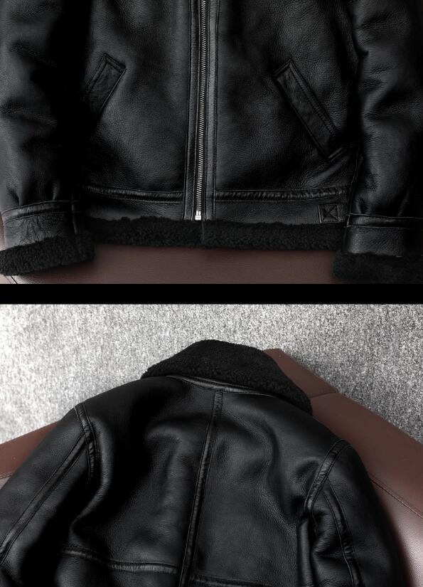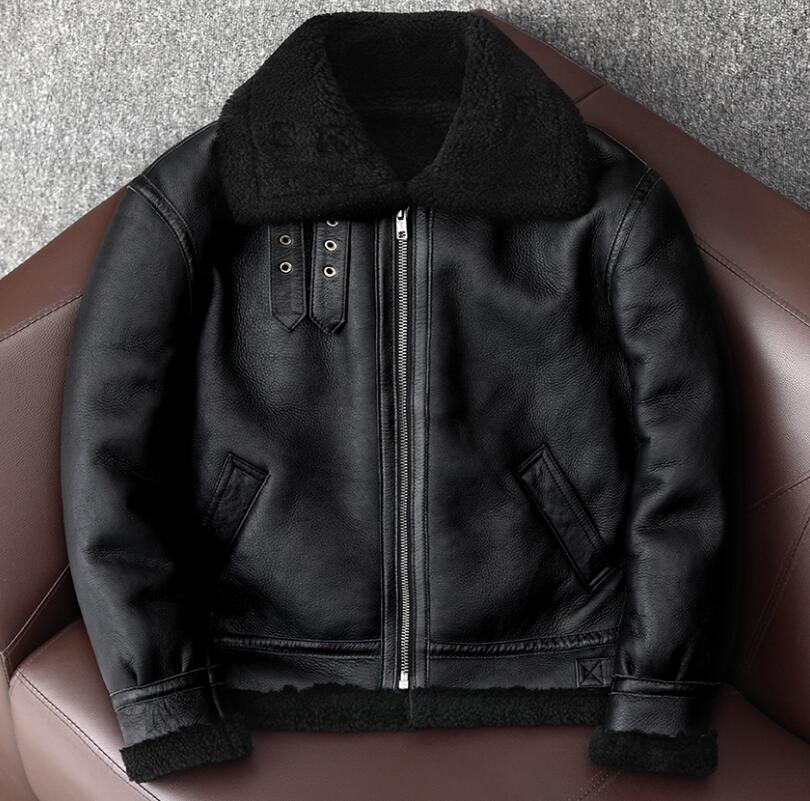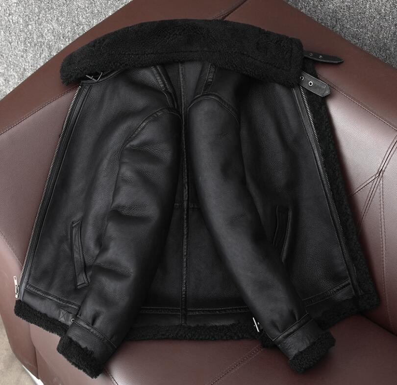 暖かい 本革ジャケットB3フライトジャケット  メンズ ムートン ウール 革ジャン 本革コート 黒 Lサイズ