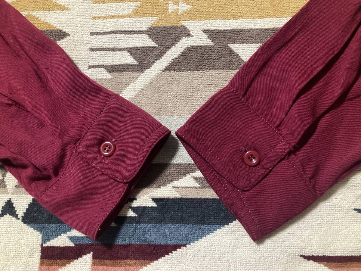 商品名:Backers 刺繍入り レーヨン 長袖シャツ サイズ:表記L 平置き:肩幅46cm 身幅(脇下~脇下)56cm 着丈(襟付根~裾)67cm 袖丈(肩~袖裾)61,5cm ※素人採寸の為多少の誤差はご了承ください。 カラー:エンジ 状態:レーヨン100%。フラップポケット×2。換えボタン付き。目立ったダメージ等なく良い方だと思います。 発送方法:レターパックプラス(配達記録付600円)orレターパックライト(配達記録なし430円) ※古着になりますので神経質な方、ご理解の無い方の御入札はお控え下さい。送料、振込手数料は落札者様の御負担となります。ノークレーム、ノーリターンでお願い致します。