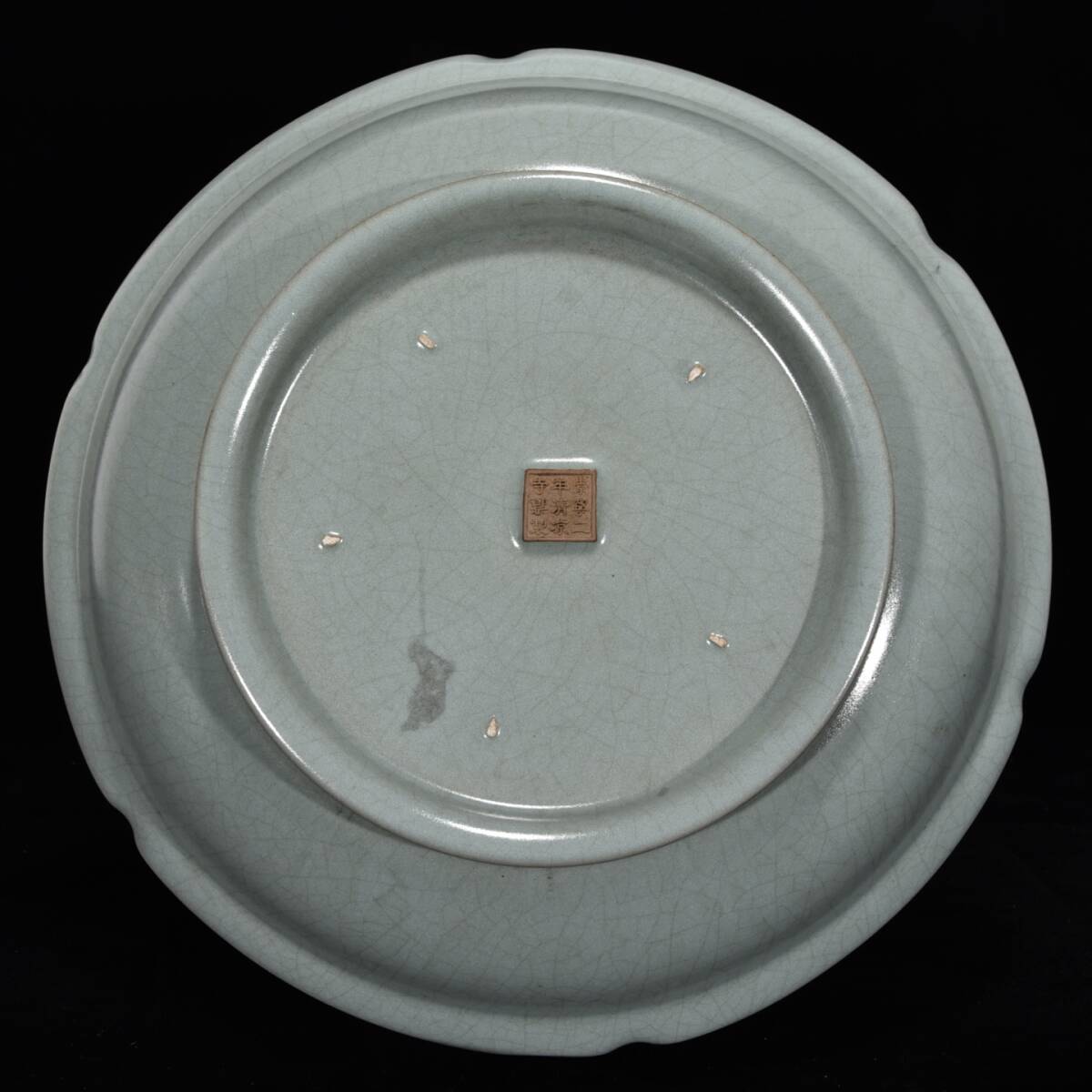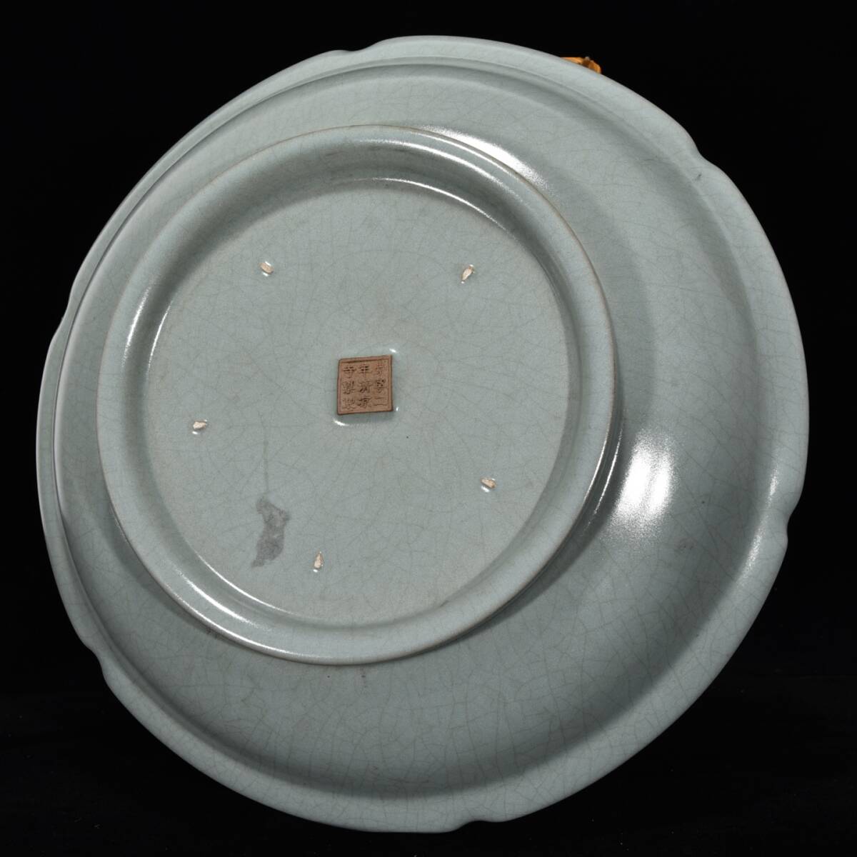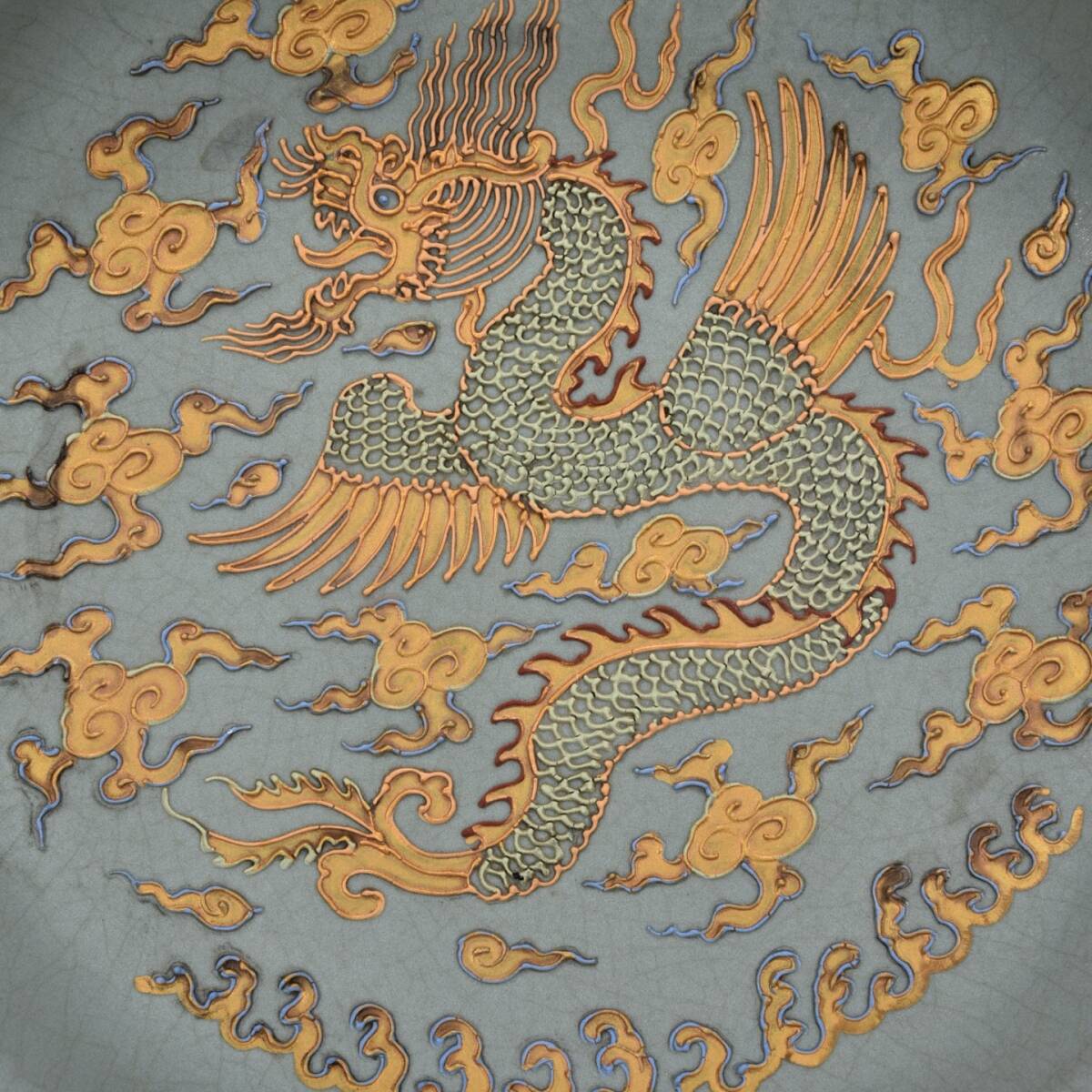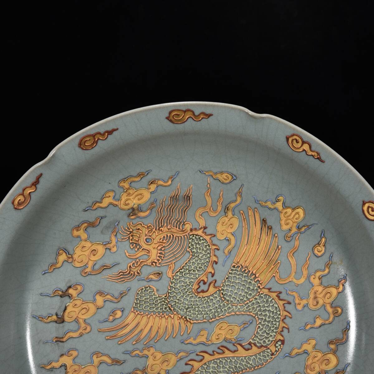 旧蔵 宋 汝窯 天青釉 瀝粉龍紋皿 陶芸 古陶磁器 中国磁器 極細工 中国古玩 骨董品 古美味 211