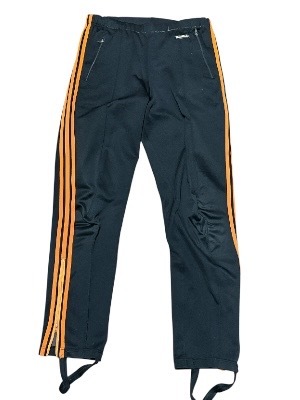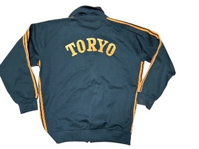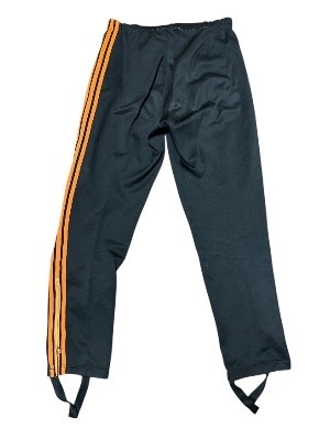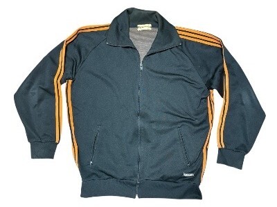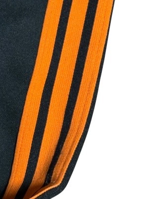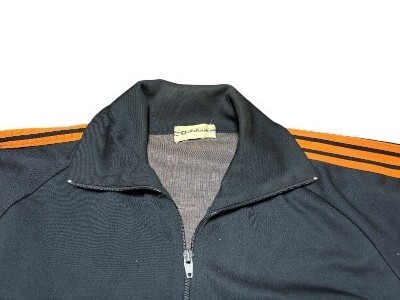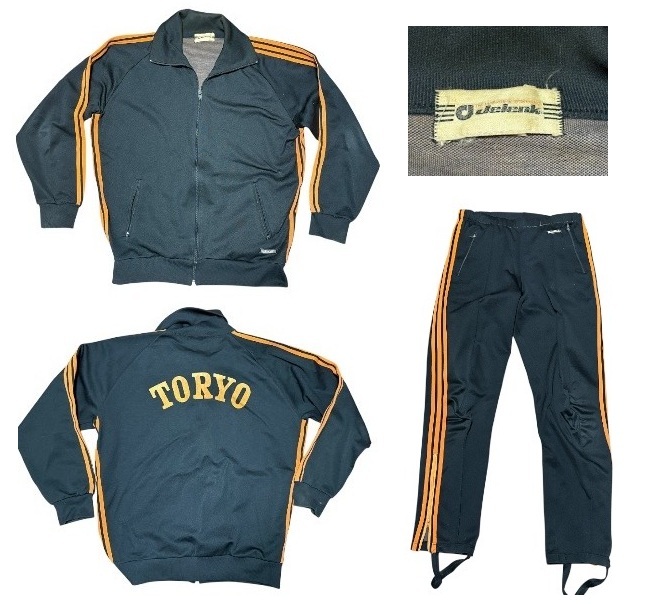 希少70年代ジャパンビンテージ★jelenk★3本ライン&フロッキープリント★ジャージ&パンツ★トラックジャケット上下★ブラックXオレンジM