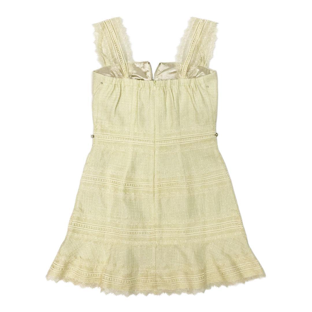 肩と裾にスカラップレースを使用したキュートなドレス。