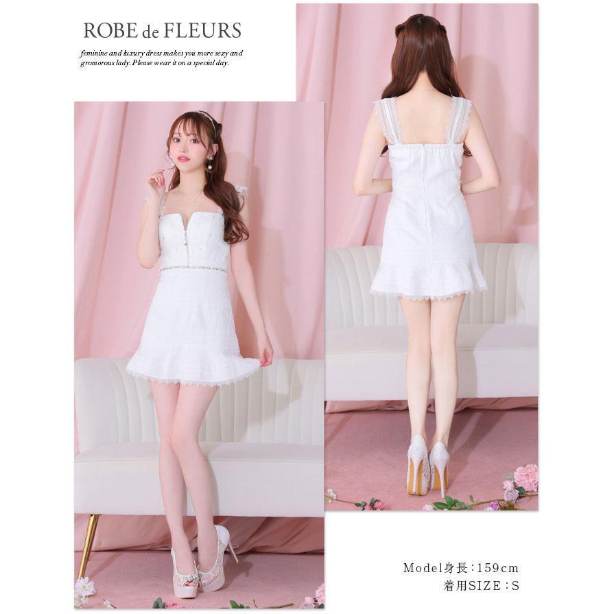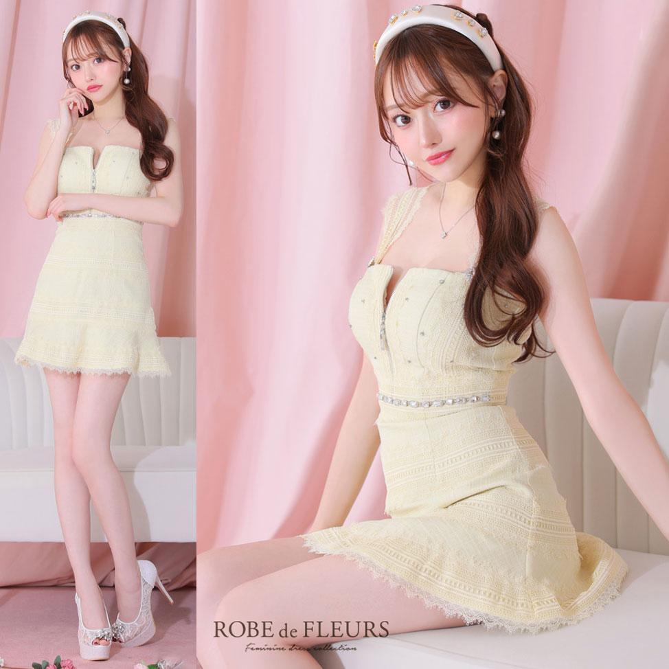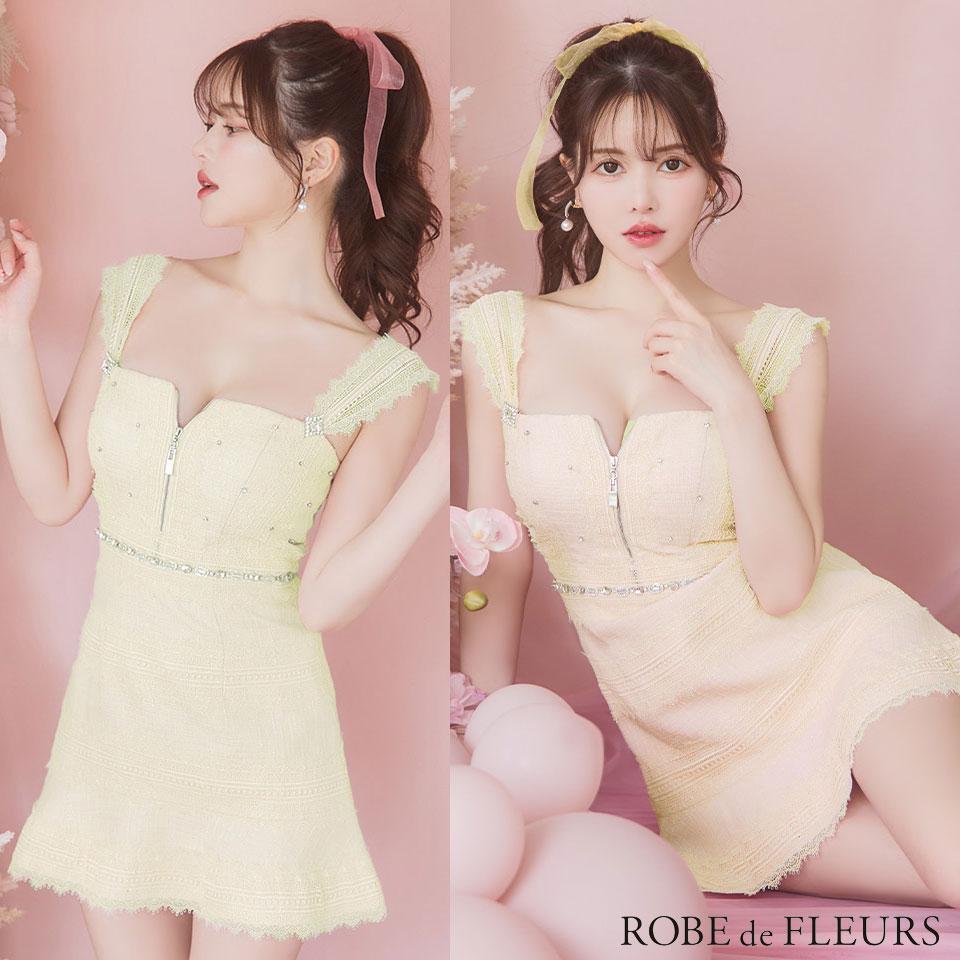 ROBE de FLEURS ローブドフルール 肩レース×ウエストビジューフレアミニキャバドレス fm3425