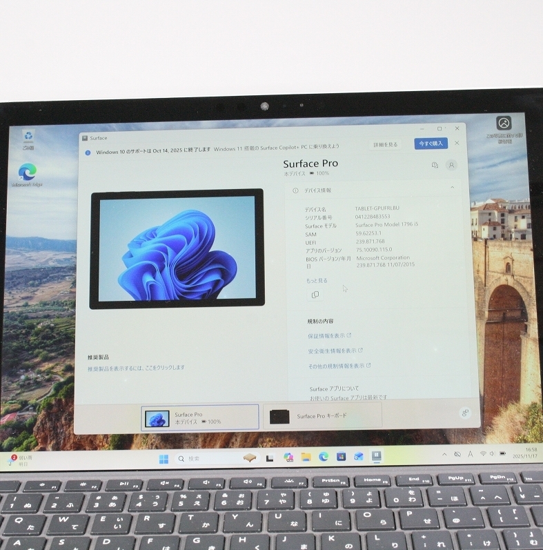 タッチパネルが便利なノートPC、Microsoft Surface Pro 5 Model:1796 です。