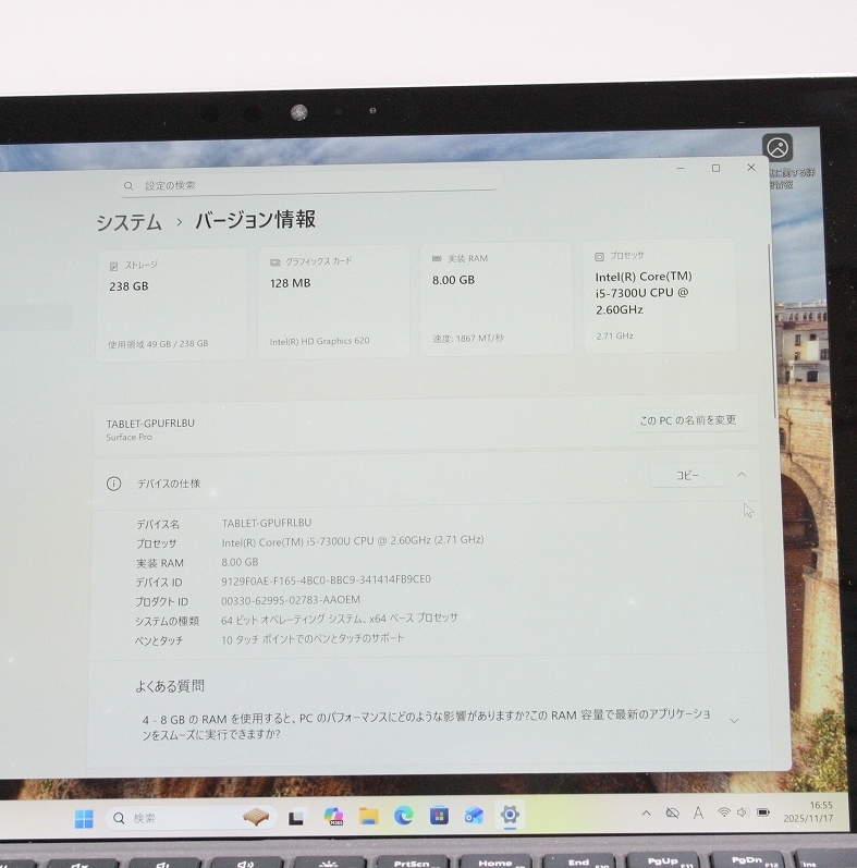 ・メモリは 8GBを搭載していますので、まだまだ現役でお使い頂けると思います。
