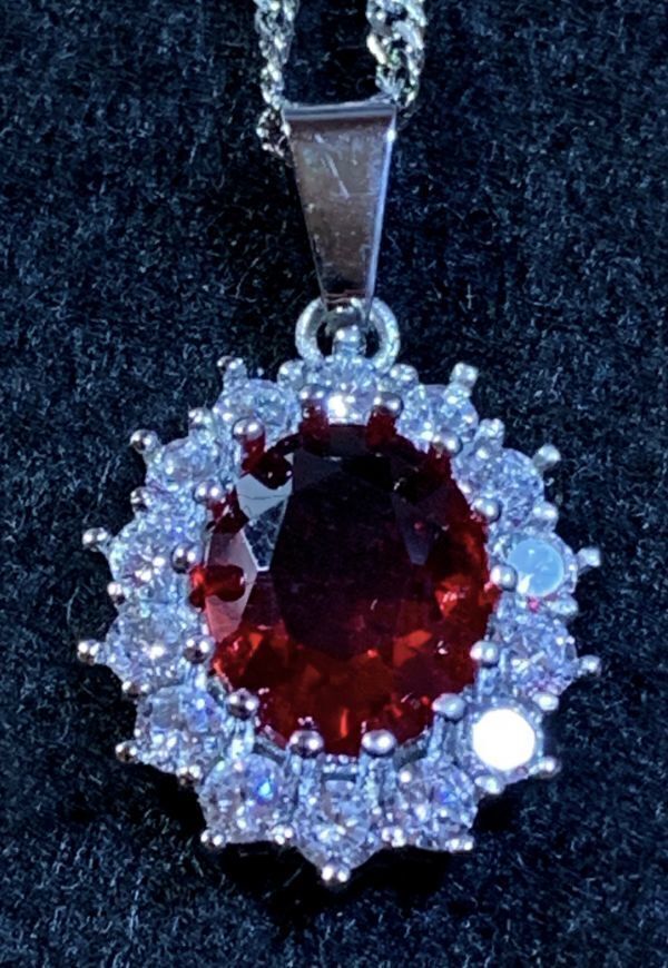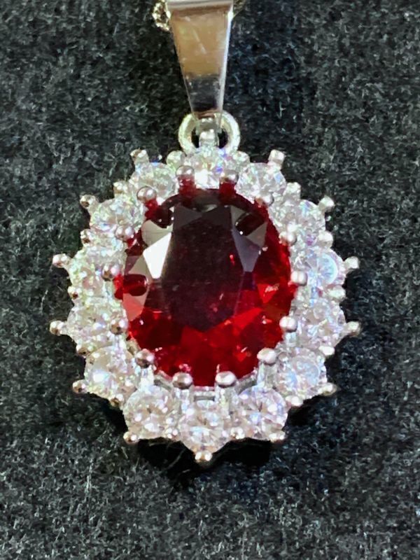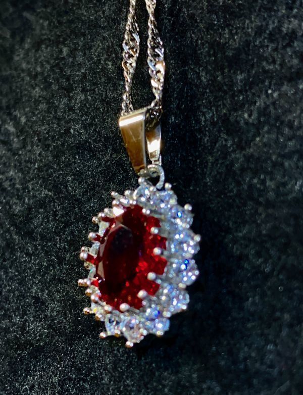 【Premio Fortuna】ルビーペンダント ピジョンブラッド色の精巧なルビーとチェーン 石サイズ約11ミリ人造結晶 S6jfpeUH