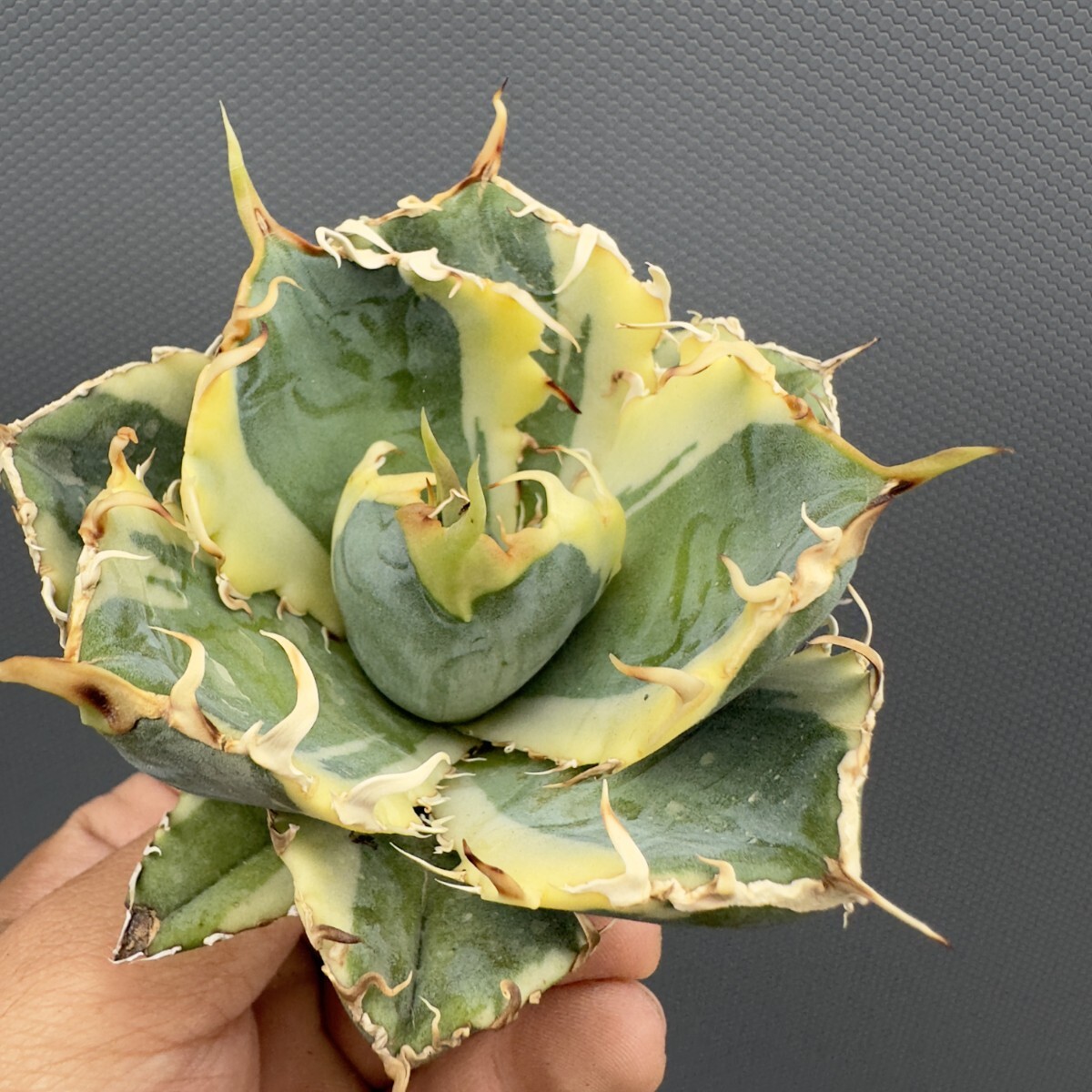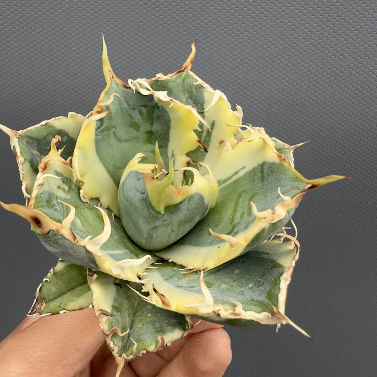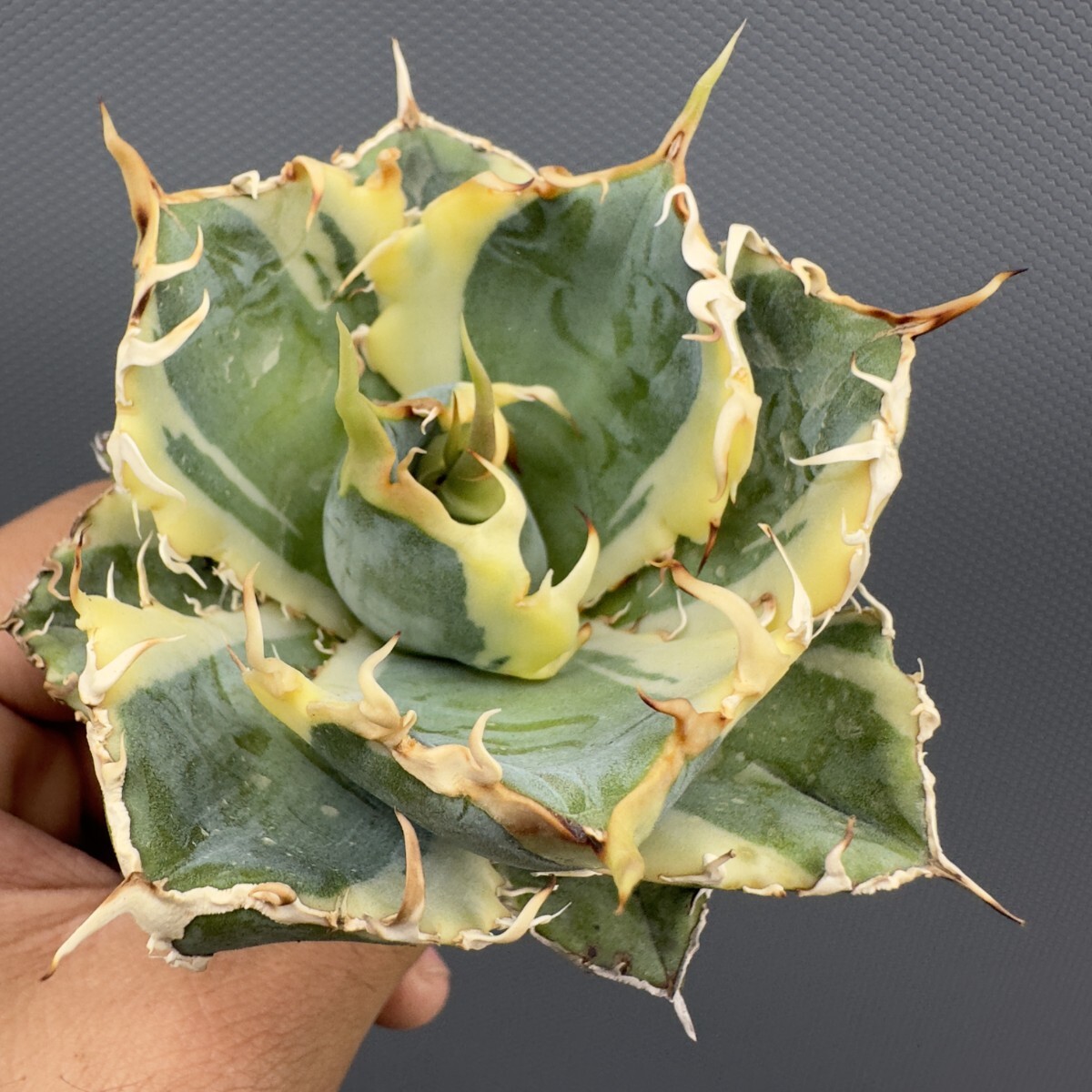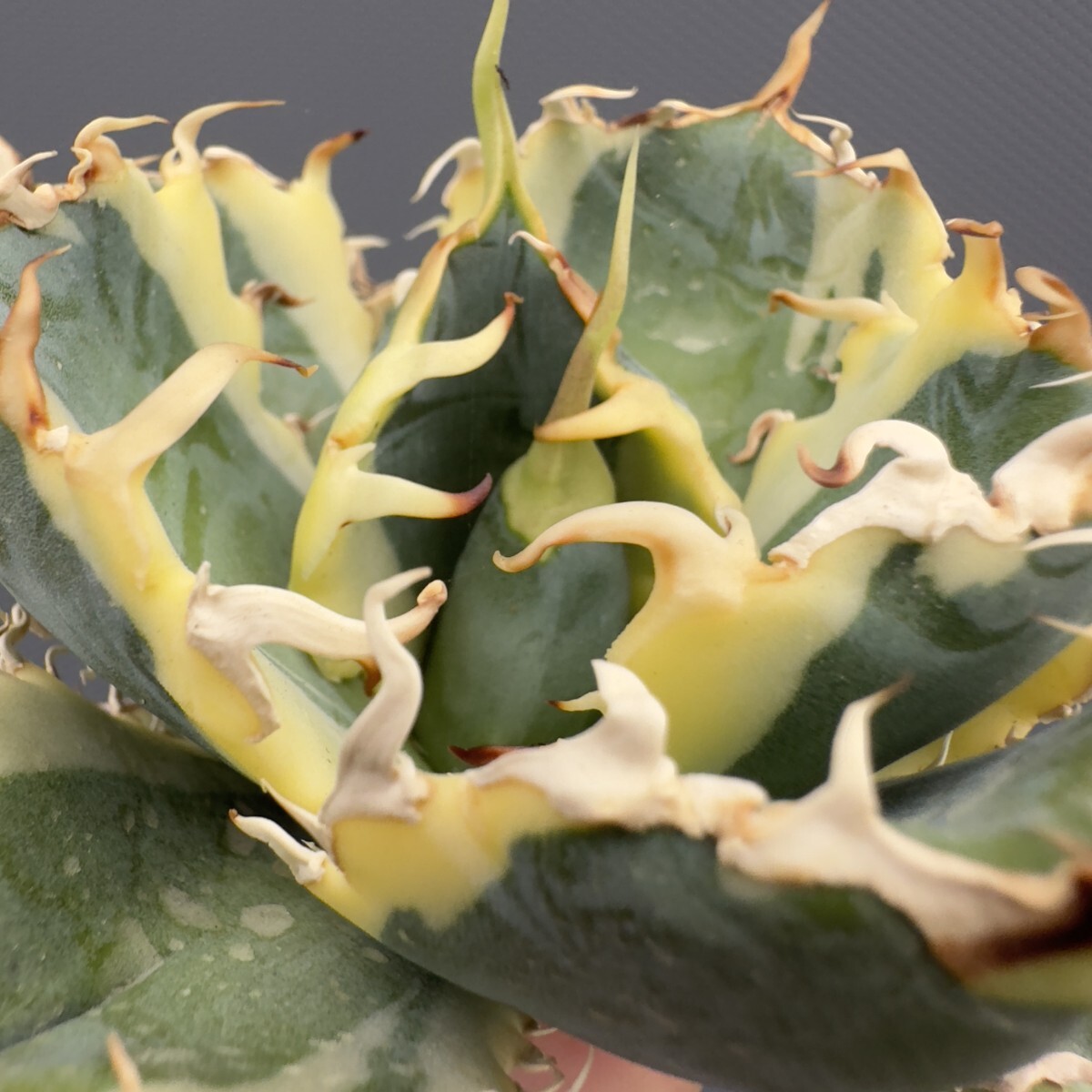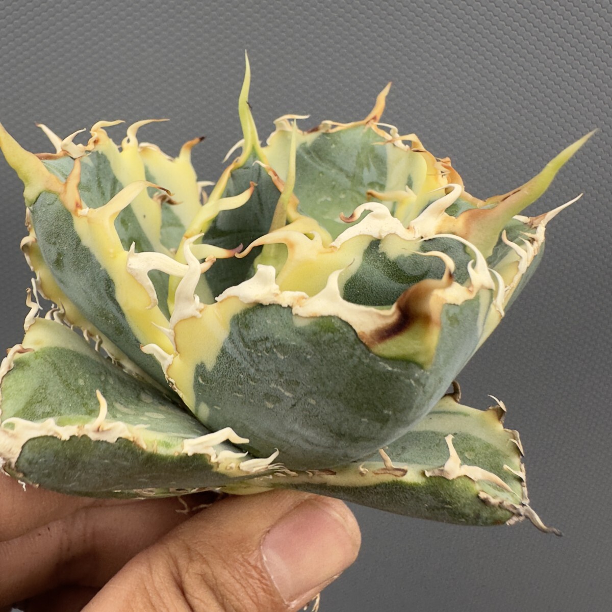 Q17 【青田園芸】 アガベ チタノタ 白鯨錦 白覆輪錦(永久斑) ☆短広葉長鋸歯タイプ☆ 極上希少株