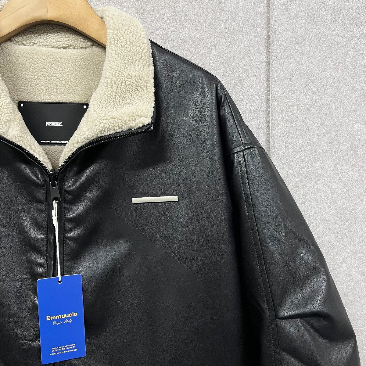 個性・レザージャケット 定価14万◆Emmauela・イタリア・ミラノ発◆羊革100% 本革 裏ボア 防寒 リバーシブル 2WAY 革ジャン ライダース 秋冬 M/46サイズ