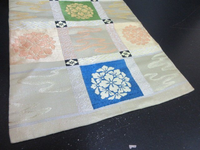 | 商品名 | 1円 中古 名古屋帯 正絹 和装 和服 市松 ヱ霞 紗綾形文 草花 六通柄 九寸帯 長さ332cm【夢職】11/28閉店★ |