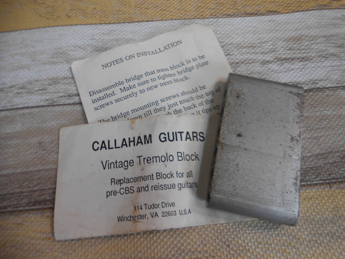 | マニアの方から大量に楽器や機材をお譲り頂きました。 今後も色々と出品予定ですのでご期待下さい。 中古【Callaham/カラハム】トレモロブロック/Vintage Tremolo Blockの出品です。 ボディには小傷や使用感はございますが致命的なダメージはございません。 画像の物が全てとなります。 |