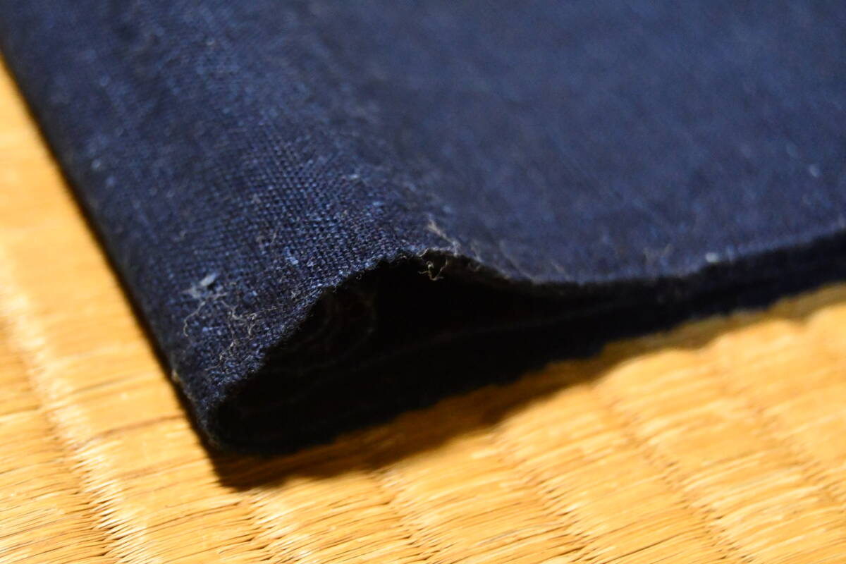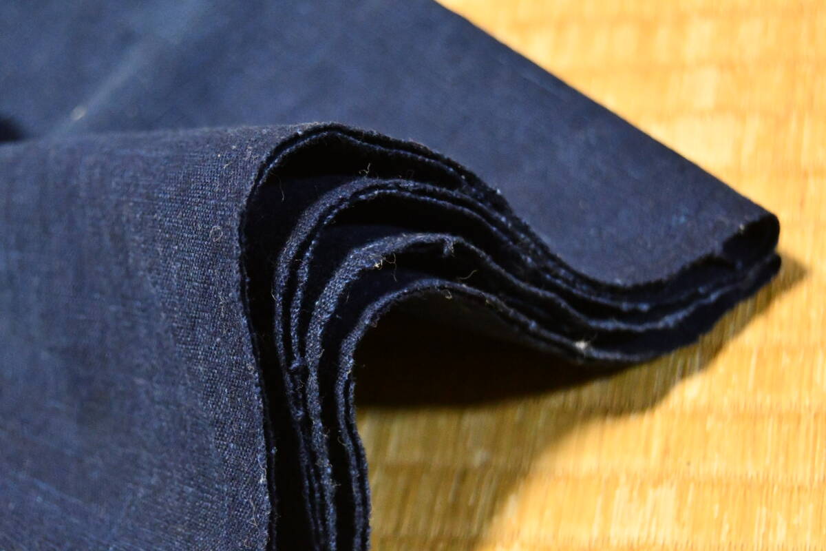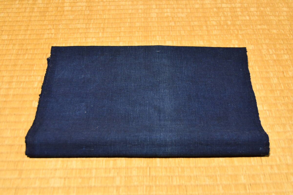 紺藍色の藍染めの無地木綿です。枯れ紺で手紡ぎ糸のいい風合いの木綿です。画像の穴傷がありますがアートなリメイク創作材料にいかがでしょうか。洗濯アイロン済です。