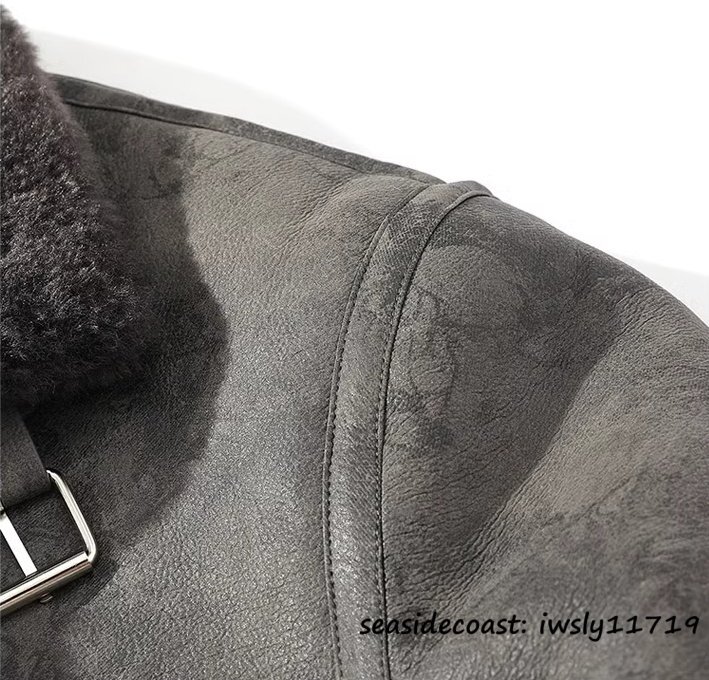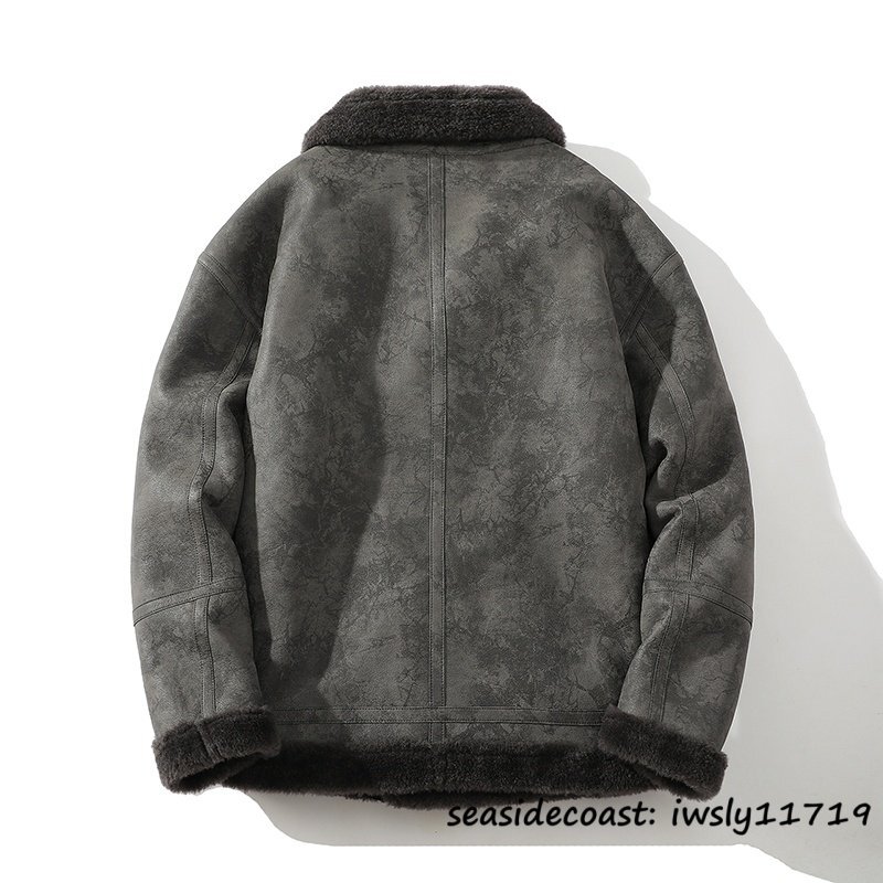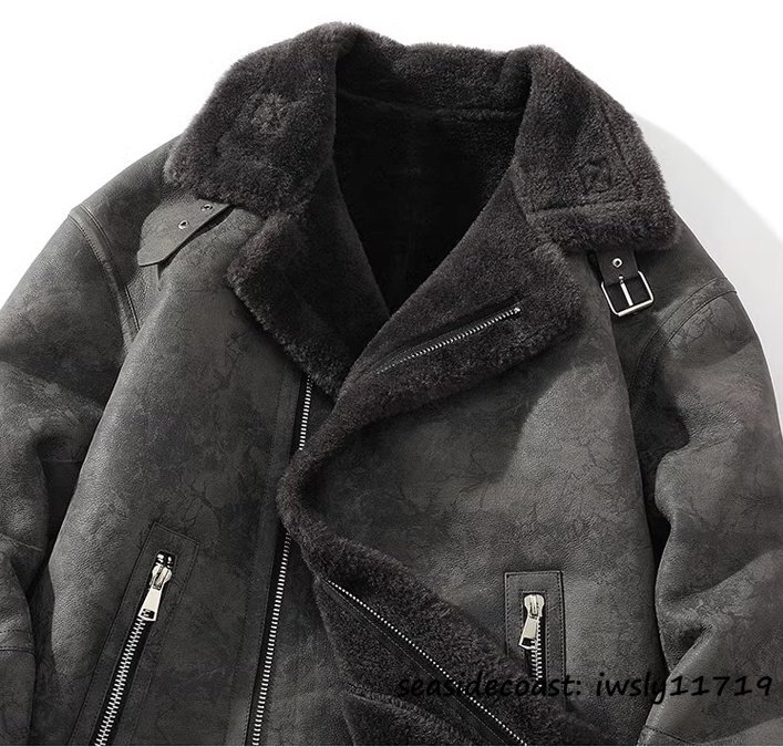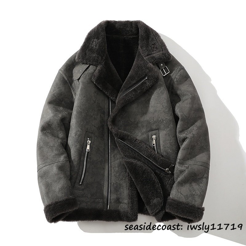 定価12万超■ファーコート ムートンコート 超防寒 厚手 ライダース フライトジャケット 秋冬新品 上品 ジャンバー ブルゾン グレー 5XL