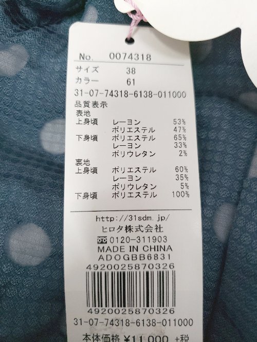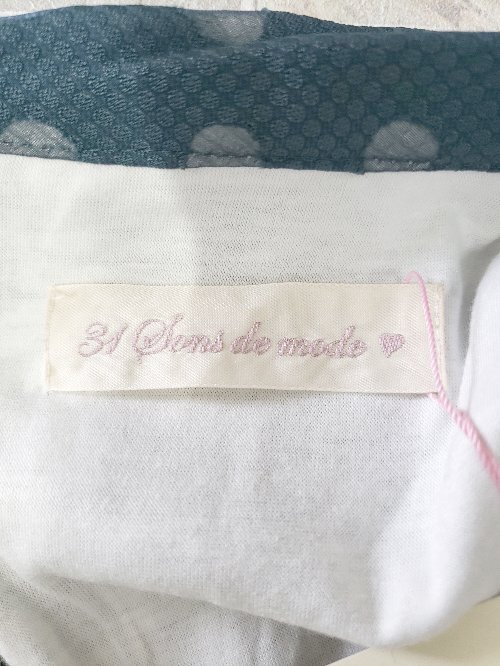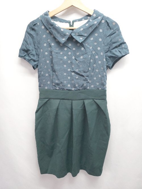 ◇ ⊂ 未使用 31 Sons de mode 切替 ドット 半袖 ミニ丈 ワンピース サイズ38 グリーン系 レディース E