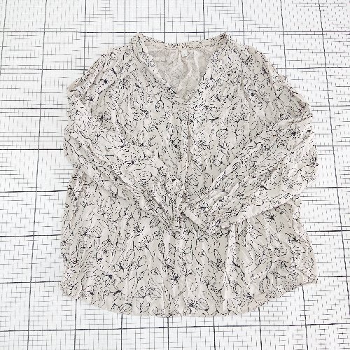 ◇ Θ GLOBAL WORK グローバルワーク 花柄 長袖 ブラウス カットソー サイズXL ライトベージュ系 レディース E