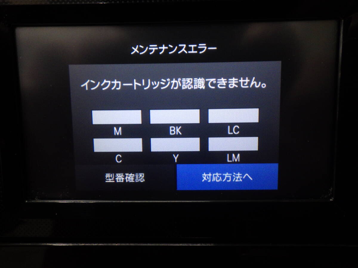 使用状況:電源投入時、インクカートリッジを認識しません。インクカートリッジをすべて外した後、