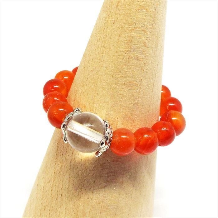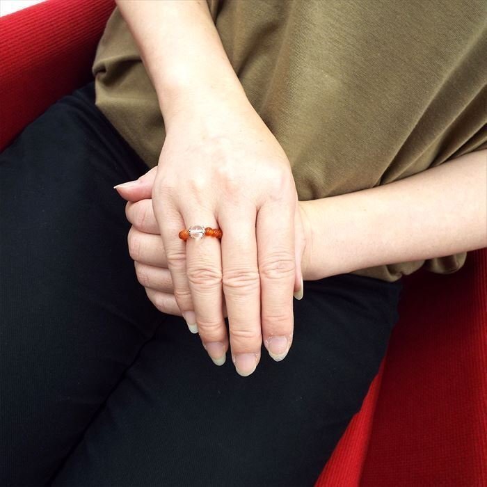 | 【STONE KITCHEN 天然石 パワーストーン】 さりげない輝きがとってもおしゃれ!! ブレスレットと違って指輪だとどんな服装でも身につけられるので 自分だけの可愛いお守りにオススメです☆ カーネリアンは何かを始めようとする人やエネルギー不足を感じている人にオススメの石です。 臆病な気持ちを退け力強さと勇気を与え 目標の達成や成功に導いてくれるといわれています。 【サイズ】約7号から12号フリーサイズ(オペロンゴム使用) 【素材】水晶:約6mm カーネリアン 約4mm 水晶 1点 注意事項 ※表示のサイズは必ずしも最大値・最小値のサイズのものが入っているわけではございません。 ※天然石のため同じものでも色味・模様などが異なります。 ※照明の具合で実際とは色合いが異なる場合がございます。 また、天然素材特有のクラック・内包物を有する場合がございます。予めご了承下さい。 | |